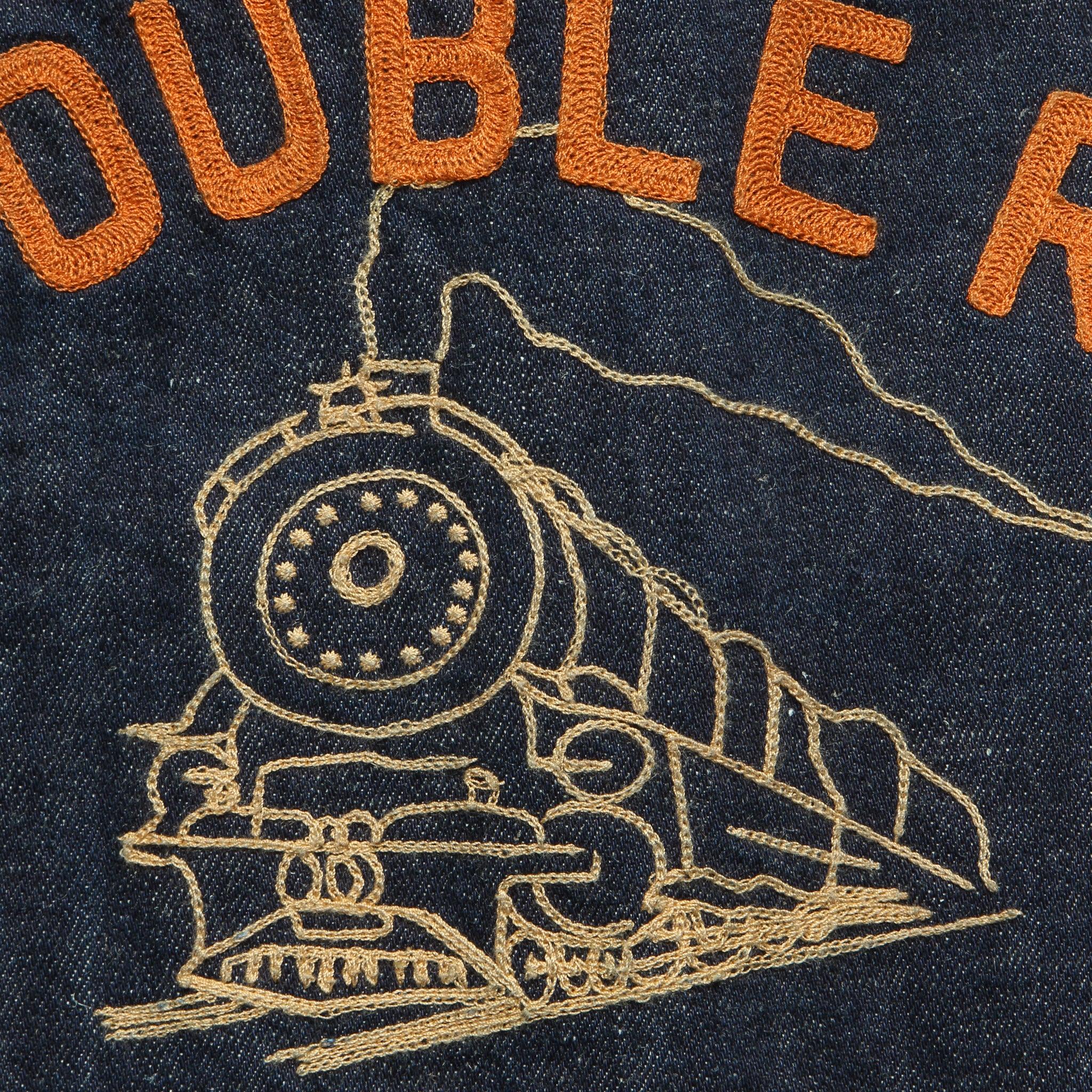 Chain-stitched “Double RL Railroaders” train-graphic embroidery