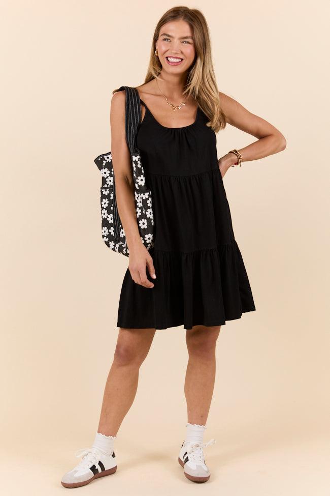 Details Mini Tiered Knit Dress Fabric has stretch Adjustable straps Unlined Size small from shoulder to hem: 30.5" Material and Care 65% polyester 35% cotton Machine wash cold, hang dry Patterns may vary Materials may have natural variations Colors may vary from different viewing devices.
