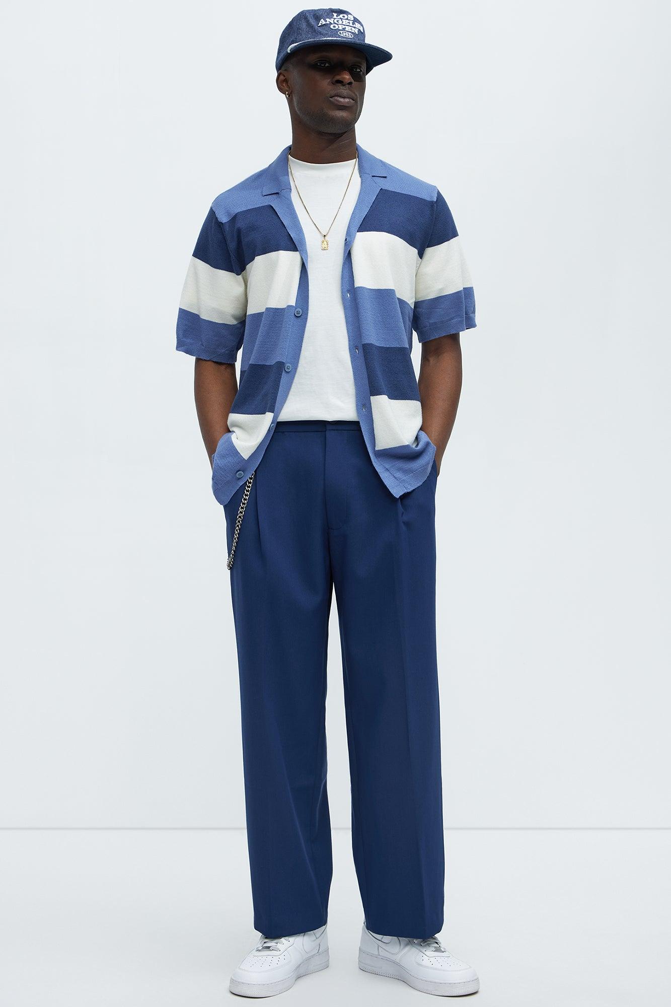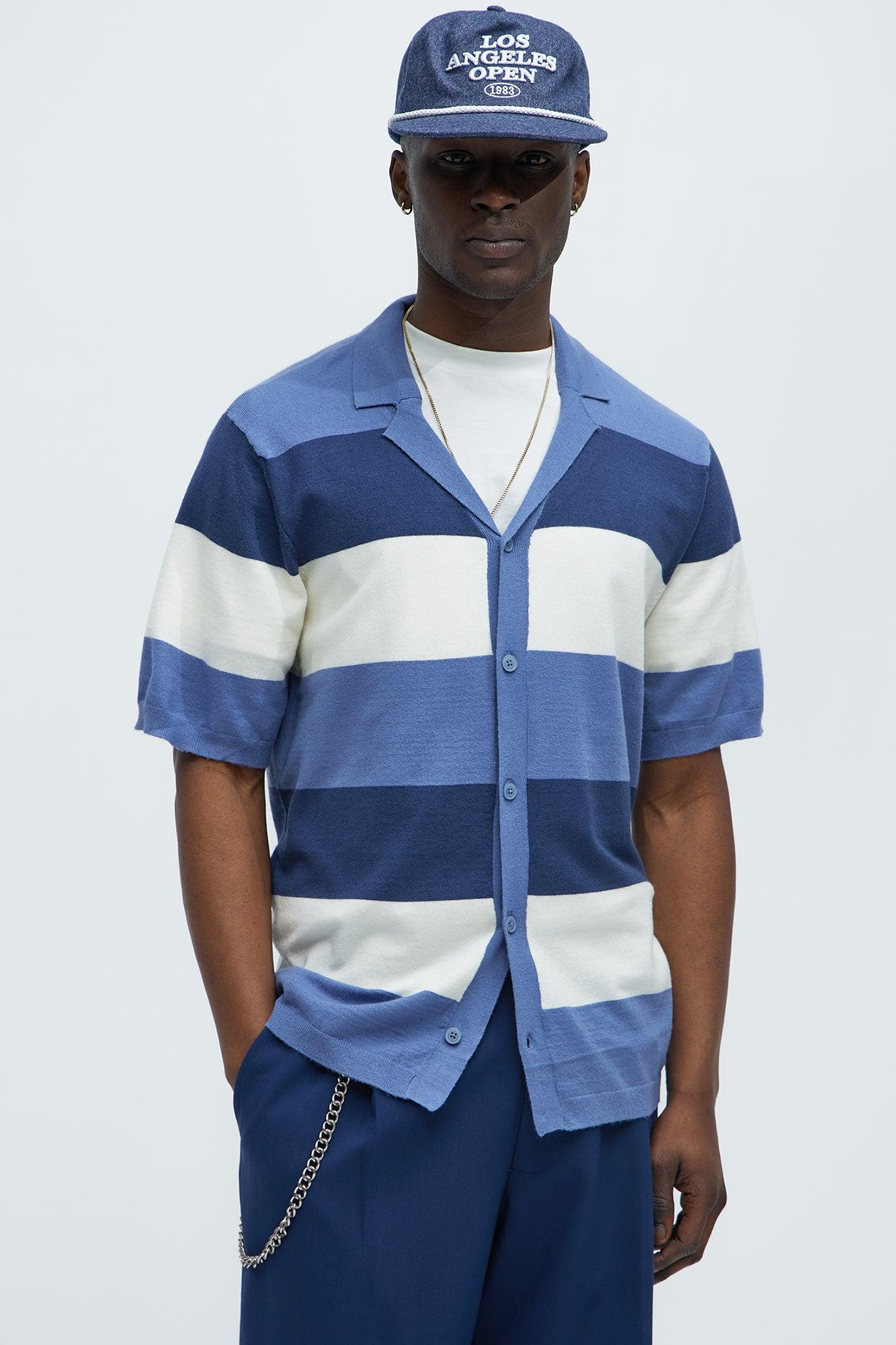 Dodge Cuban Collar Knit Shirt - Blue/combo