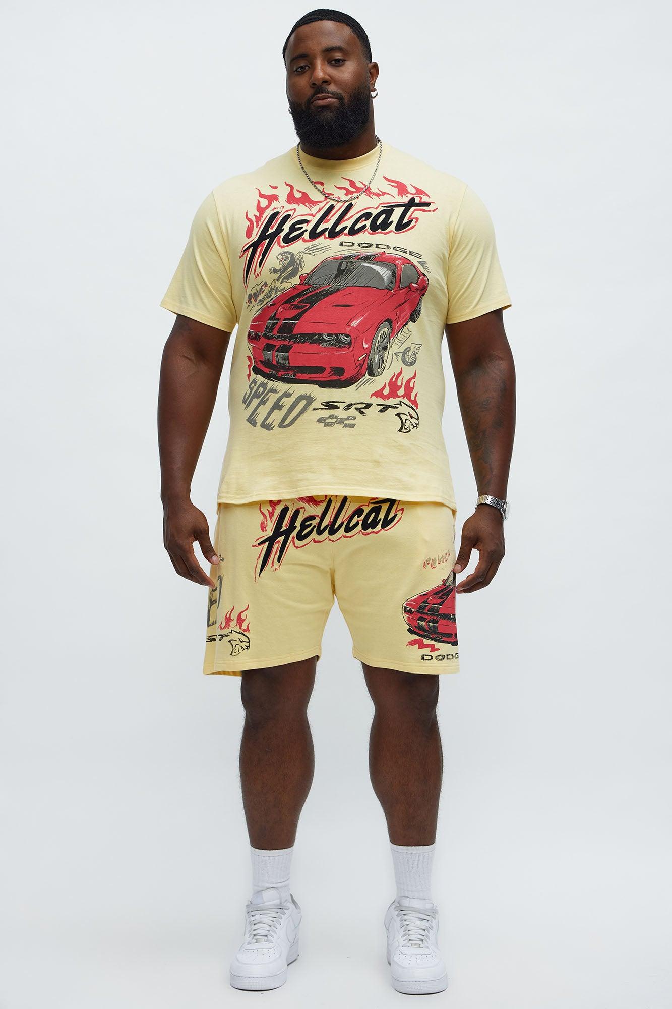 Available In Tan. Crew Neck Short Sleeve Screen Print Pair With "Dodger Hellcat Speed Sweatshorts" Disclaimer: Due To The Printing Process A Difference In Saturation May Occur. Each Garment Is Unique. 100% Cotton Imported