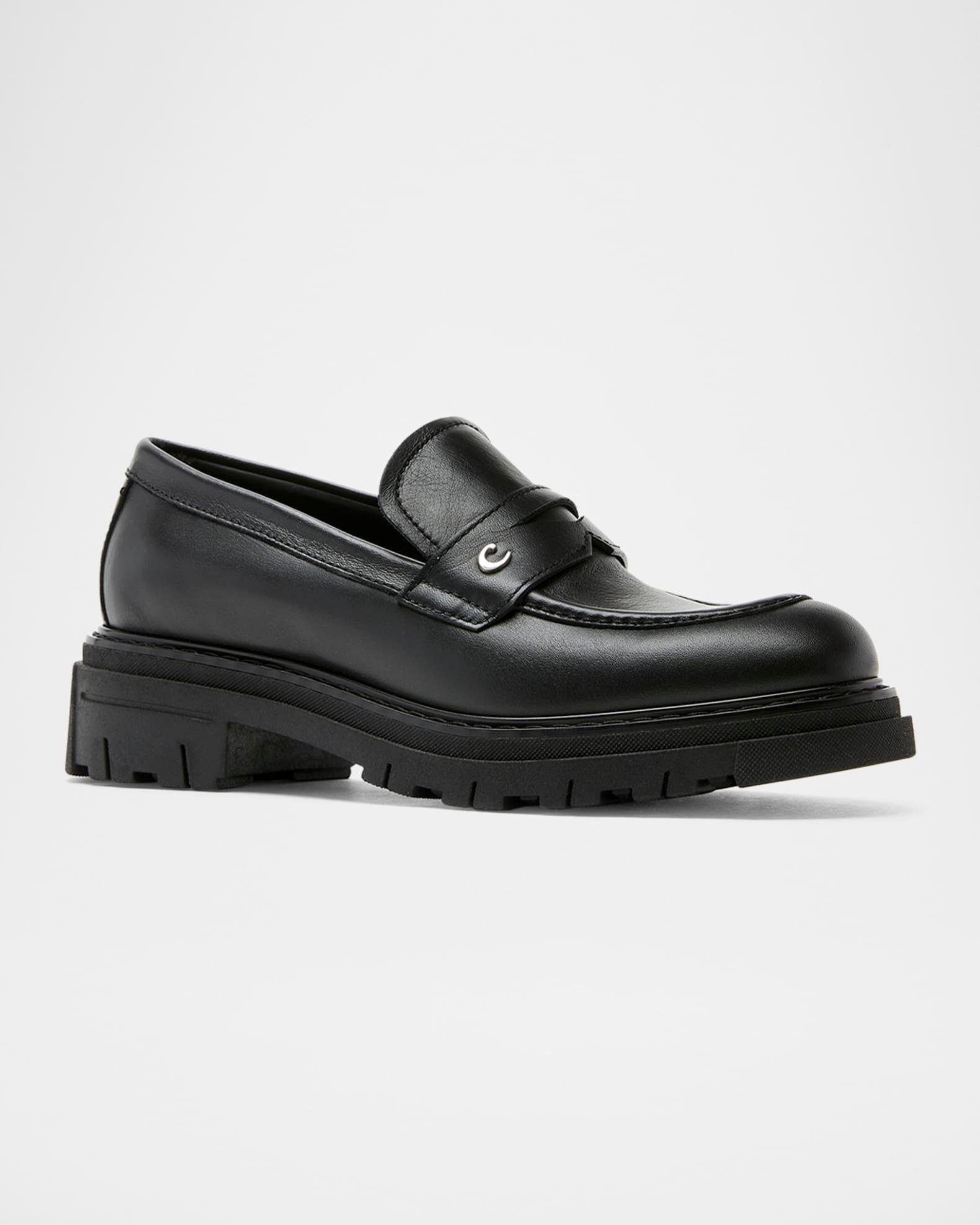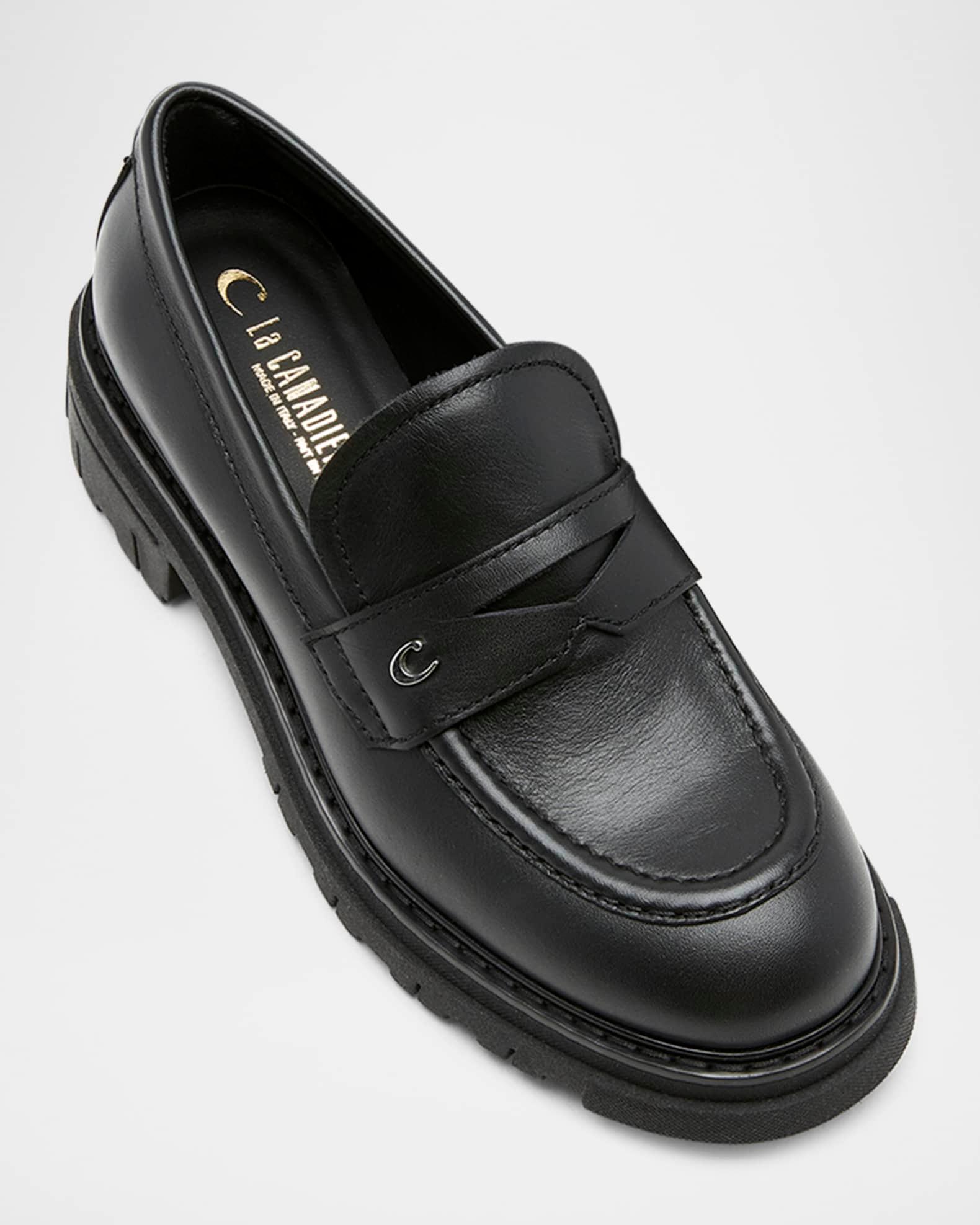 La Canadienne loafers in matte calf leather highlighted with breathable leather lining 1.50 in / 40 mm chunky heel; 1.00 in / 25 mm platform Round moc toe Penny keeper strap with logo hardware Leather lining Slip-on style Lugged TPR outsole Wipe clean Made in Italy