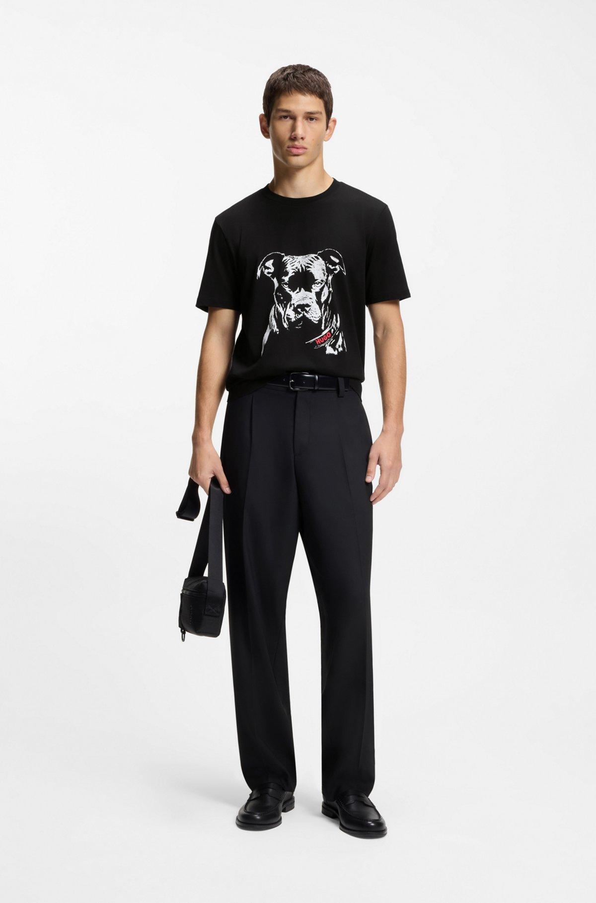 Add impact to everyday looks with the creative dog artwork of this regular-fit HUGO Menswear T-shirt. Crafted in breathable cotton jersey.