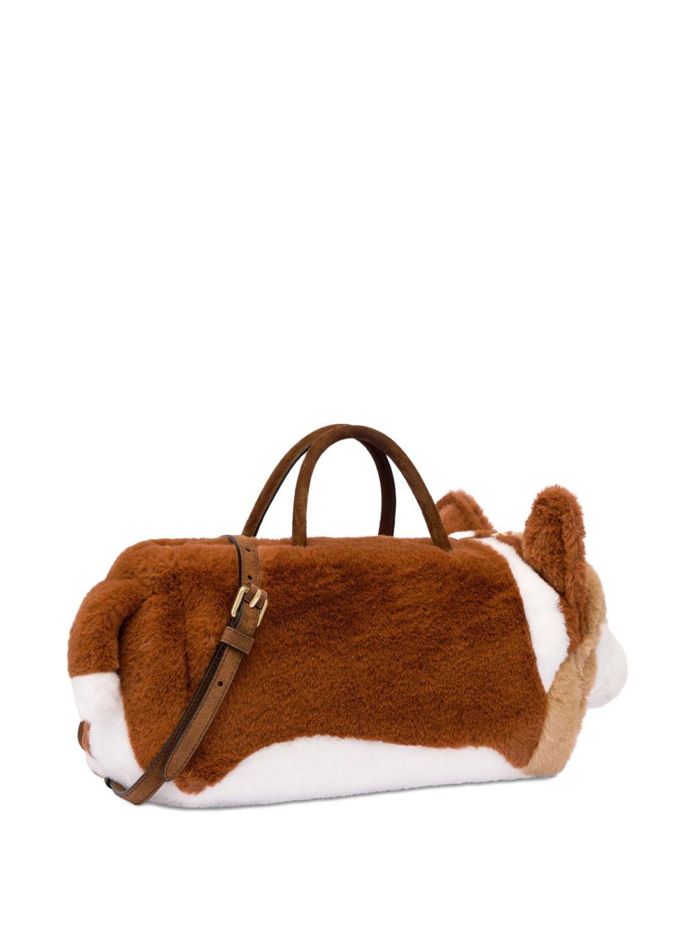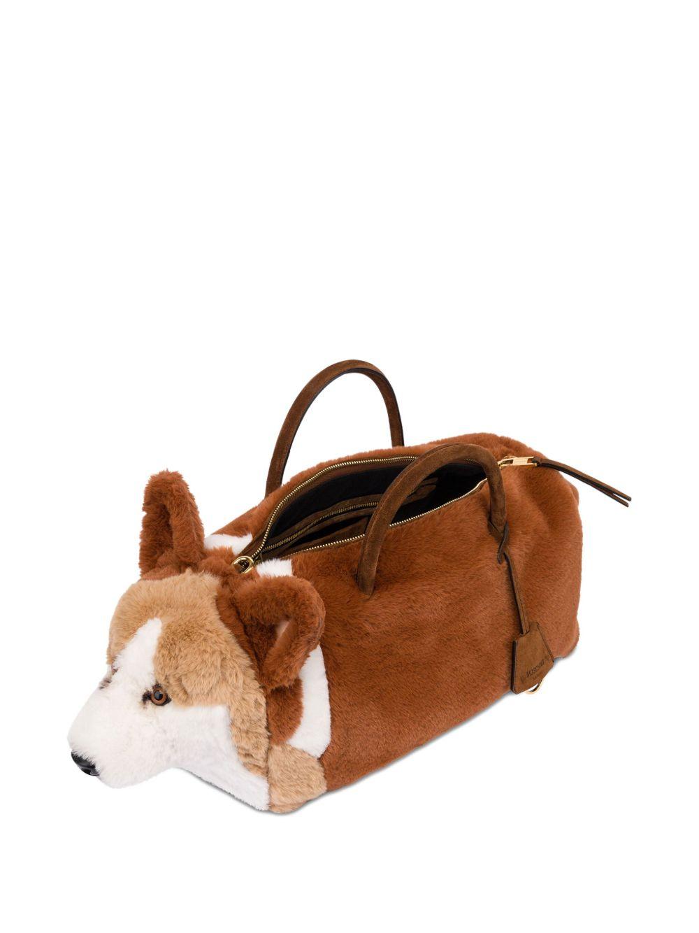 Moschino dog plush tote bag | Brown | Polyester/Calf Leather | Tote Bags | Bags | Women