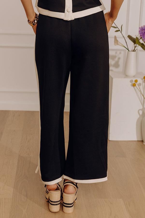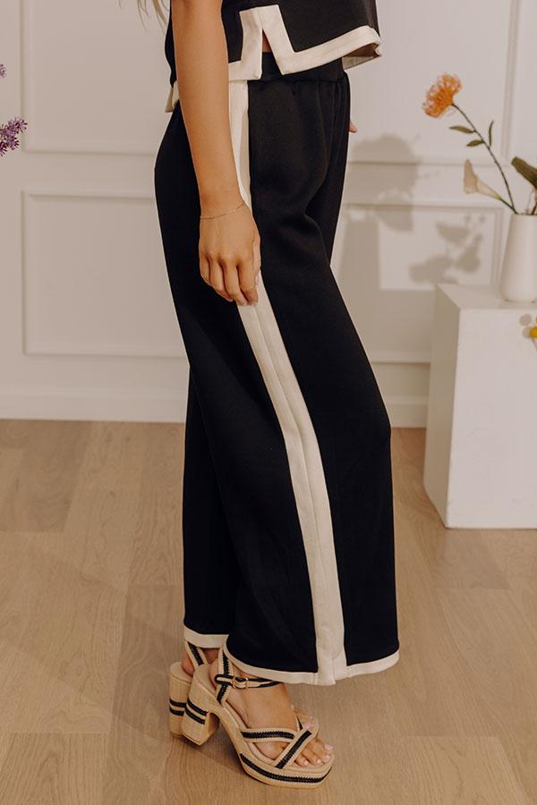 Chic comfort with a bold, on-trend twist. These wide leg scuba pants bring instant polish with their sleek black base and cream-colored accent trim, creating a look that feels confident, modern, and easy to love.