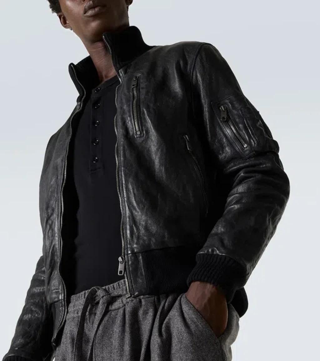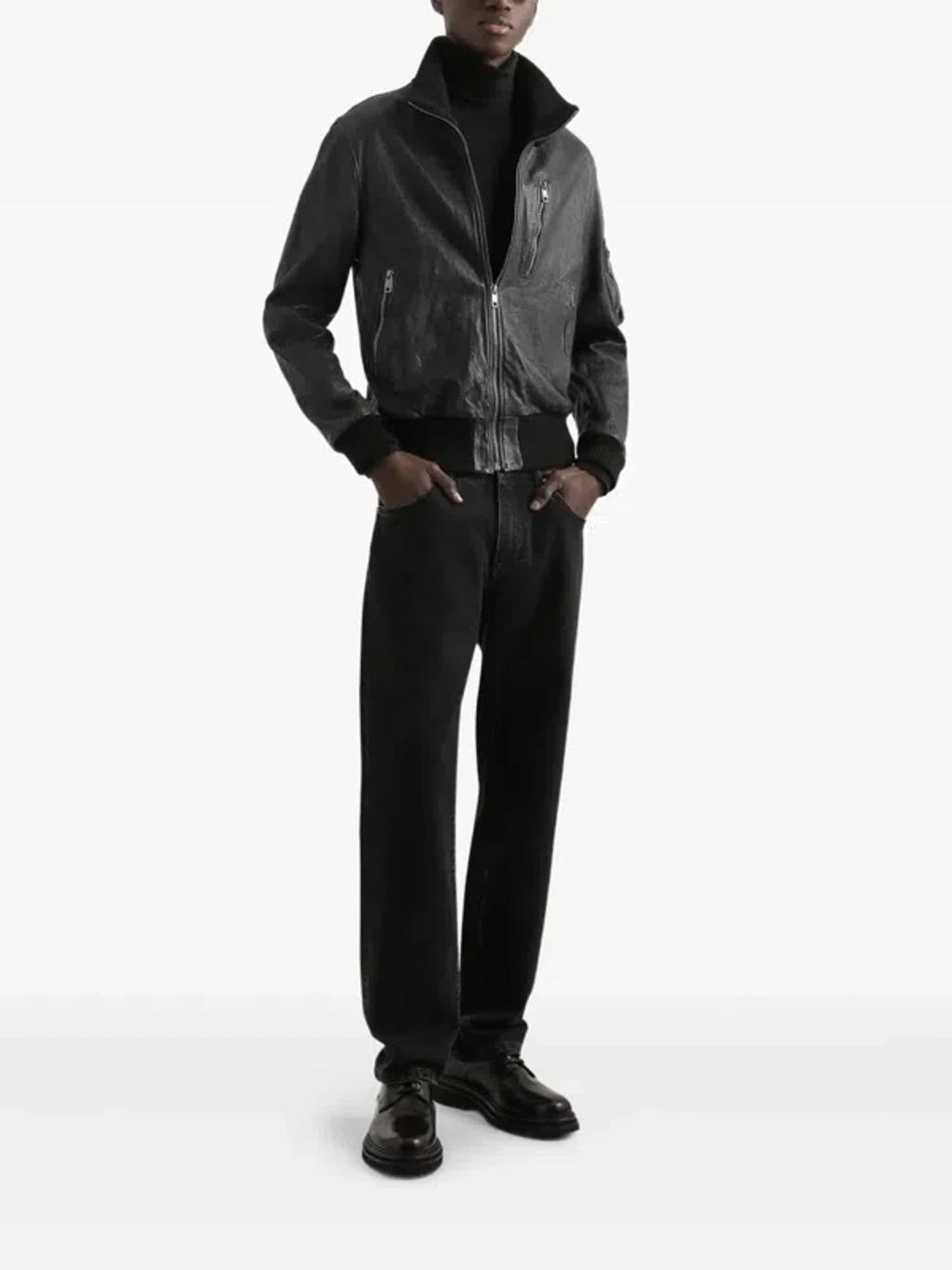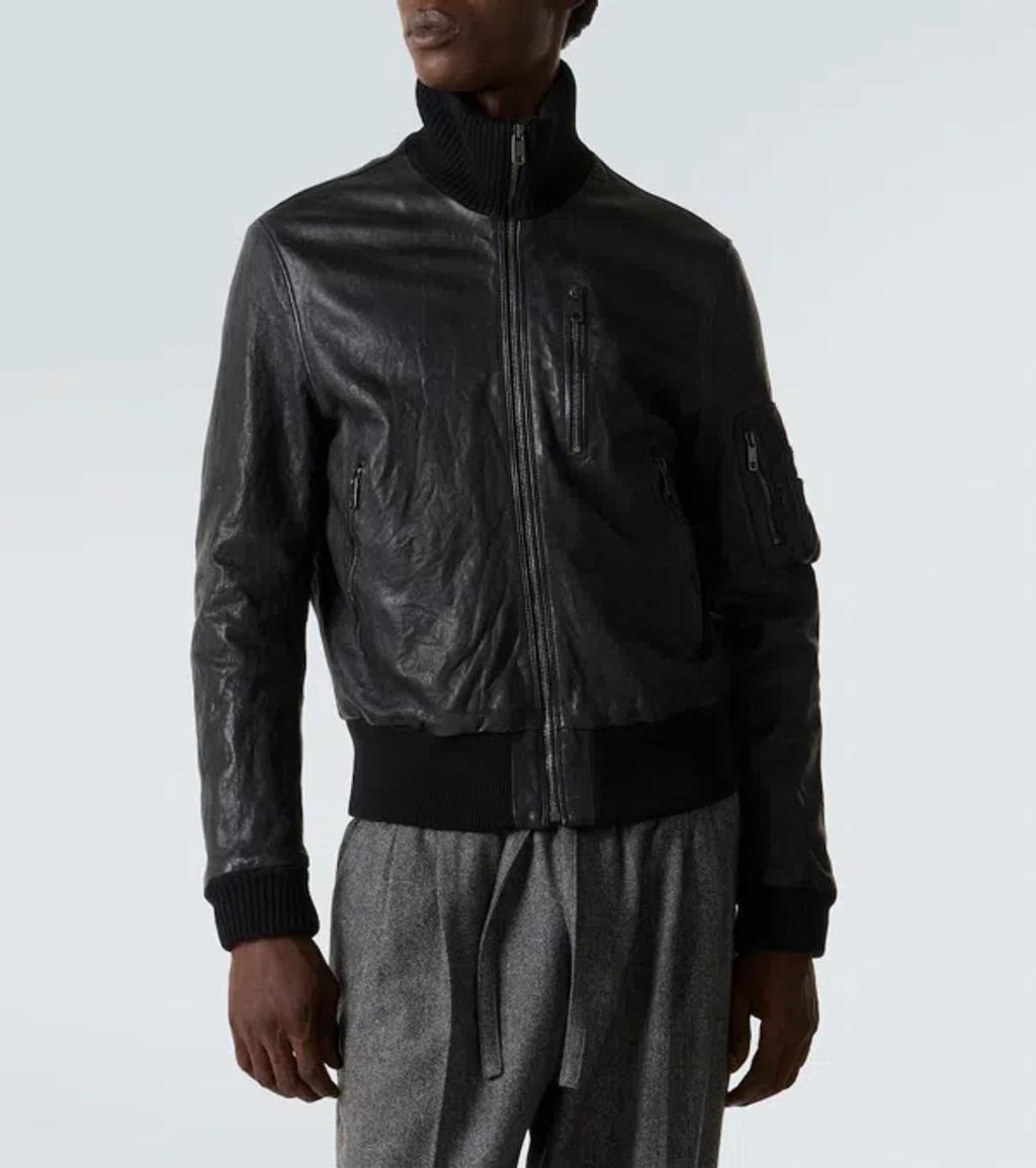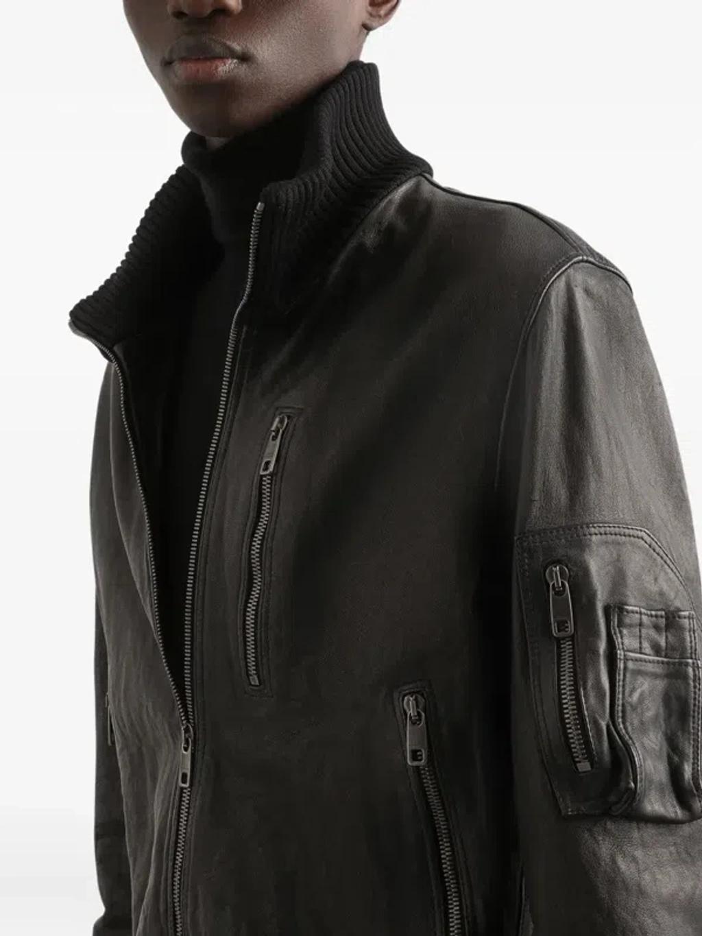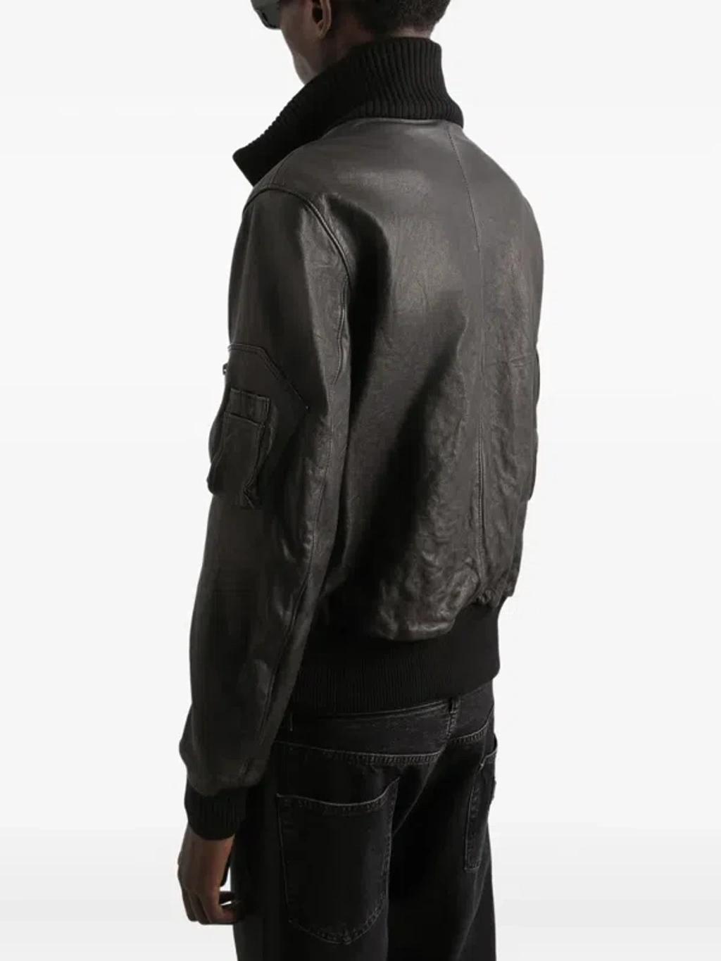Shop Dolce & Gabbana Ribbed-collar Leather Jacket In Black from 800+ stores, starting at $3948. Material: 100% sheep leather. Care instructions: specialist clean. Made in Italy. Designer color name: Nero. Item color: black. Lining: 100% viscose. Filling: 100% polyester. Trim: 96% cotton, 4% elastane. Collar: turtleneck. Closure: zipped front. Pockets: zipped pockets, sleeve pocket, internal pockets. Cuff: ribbed. Hem: ribbed. Fully lined.