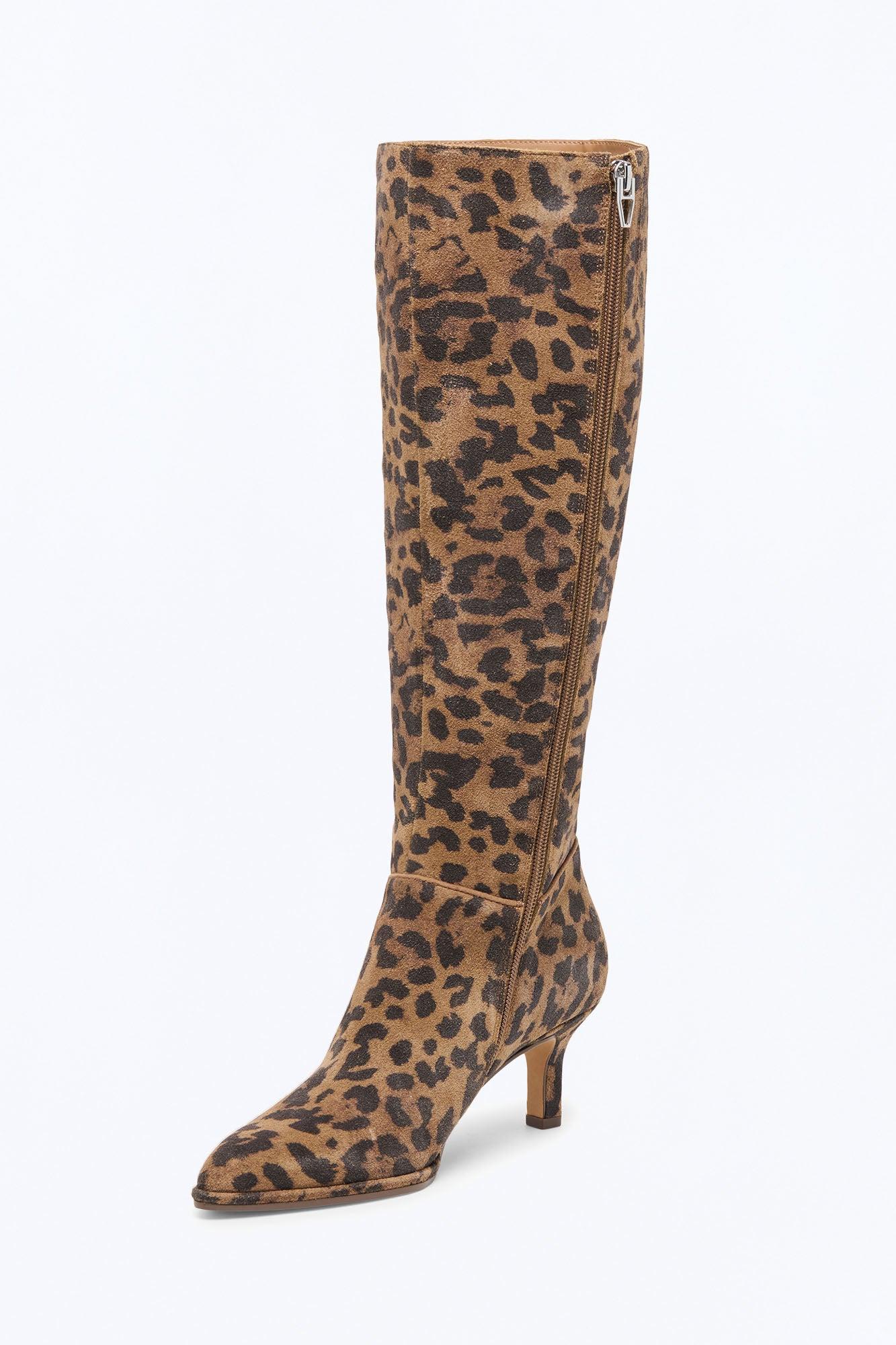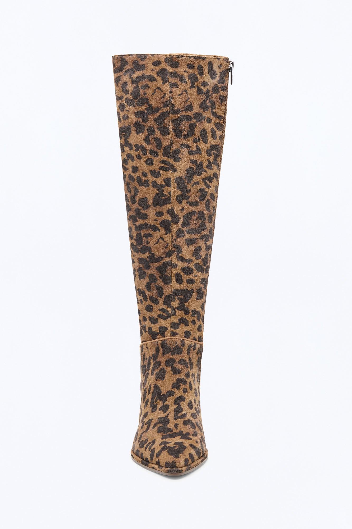 Available In Leopard. Suede Upper Synthetic Outsole Textile + Leather Sock Water-based Leather Alternative Lining 16.5" Shaft Height 15.2" Leg Circumference 2.4" Heel Height Disclaimer: Print Placement Will Vary. Imported