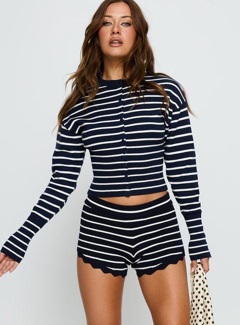 Dollhouse Knit Shorts Navy Stripe