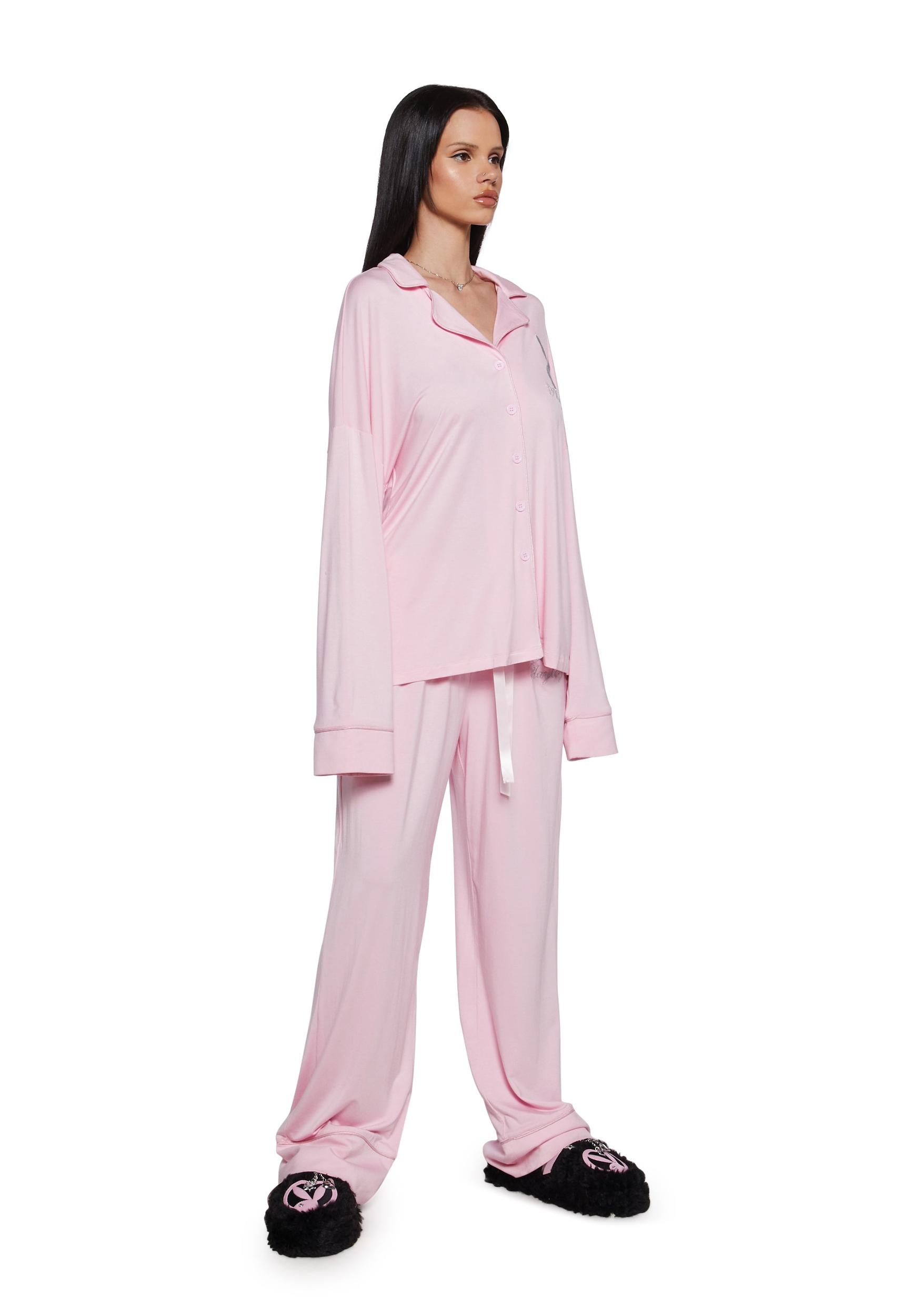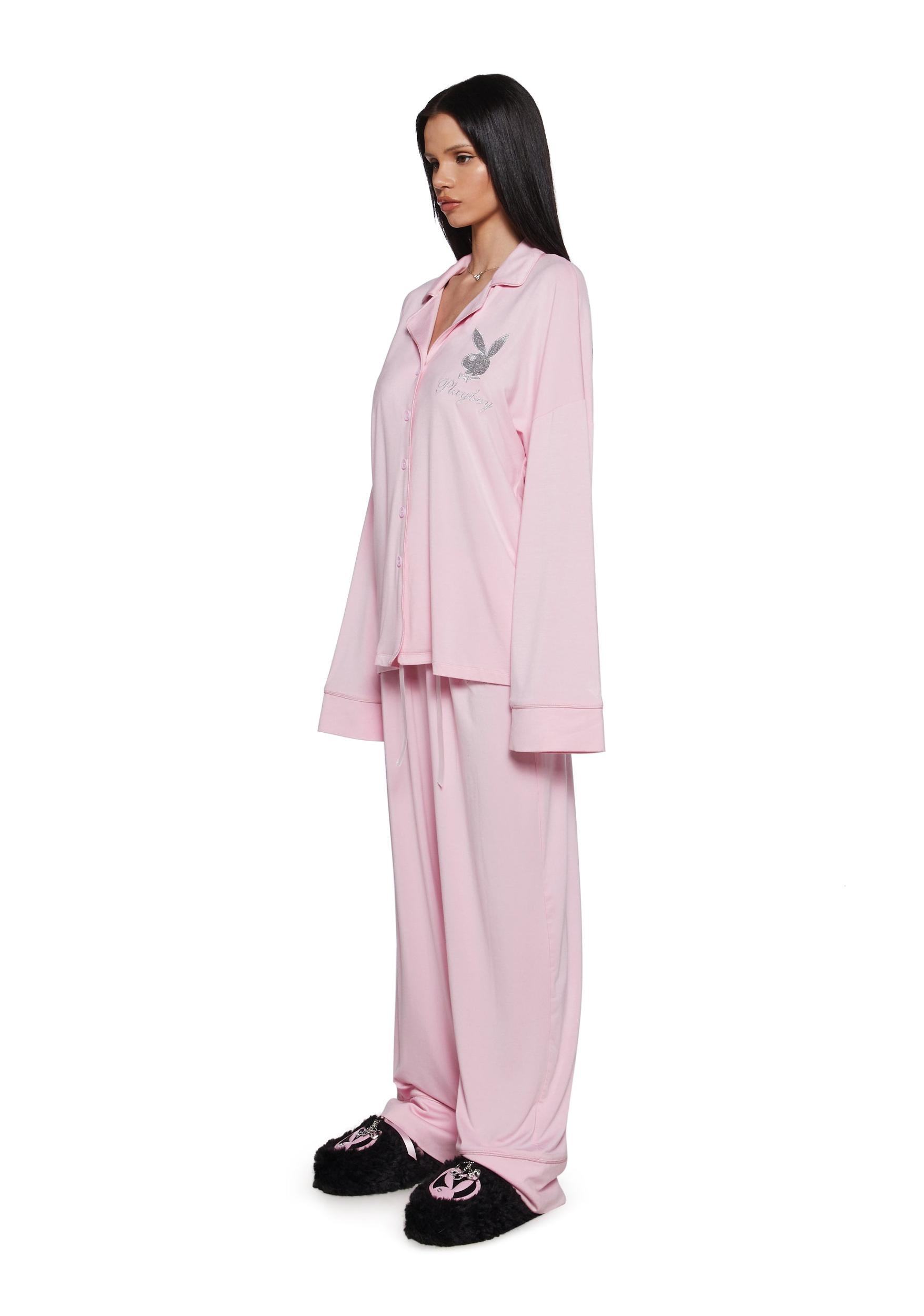 Dolls Kill x Playboy Playmate Stretchy Knit Logo Oversized PJ Set - Pink