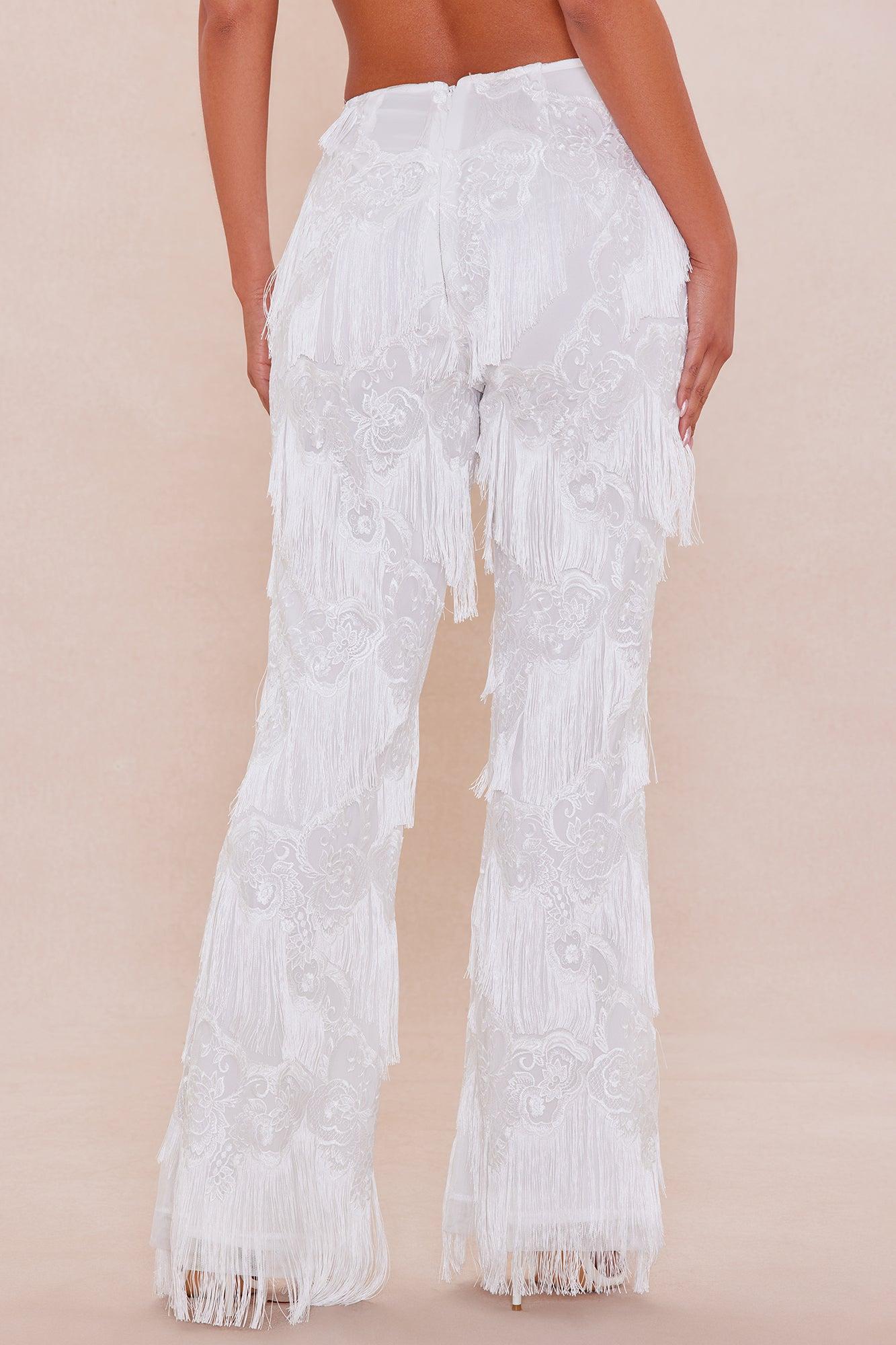 Dolly Fringe Flare Pant - White