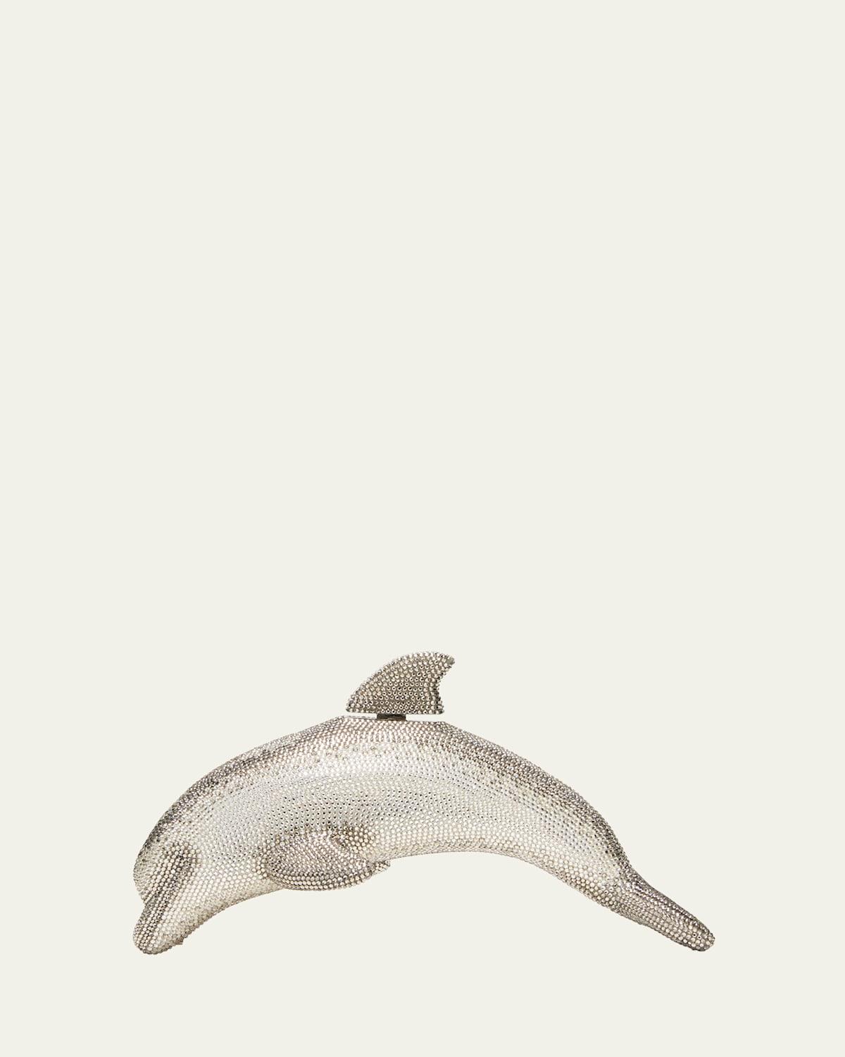 Judith Leibers silvertone Phin dolphin clutch shimmers with crystals. Handcrafted in Italy, this whimsical piece captures the designers playful yet glamorous aesthetic. Removable elbow chain Push-lock closure Metallic leather lining Brass/crystals Made in Italy SIZE 9.5W x 4.25H x 4D. Handbags - Judith Leiber Handbags > Judith Leiber Couture > Saks Fifth Avenue > Barneys. Judith Leiber Couture. Color: Silver.