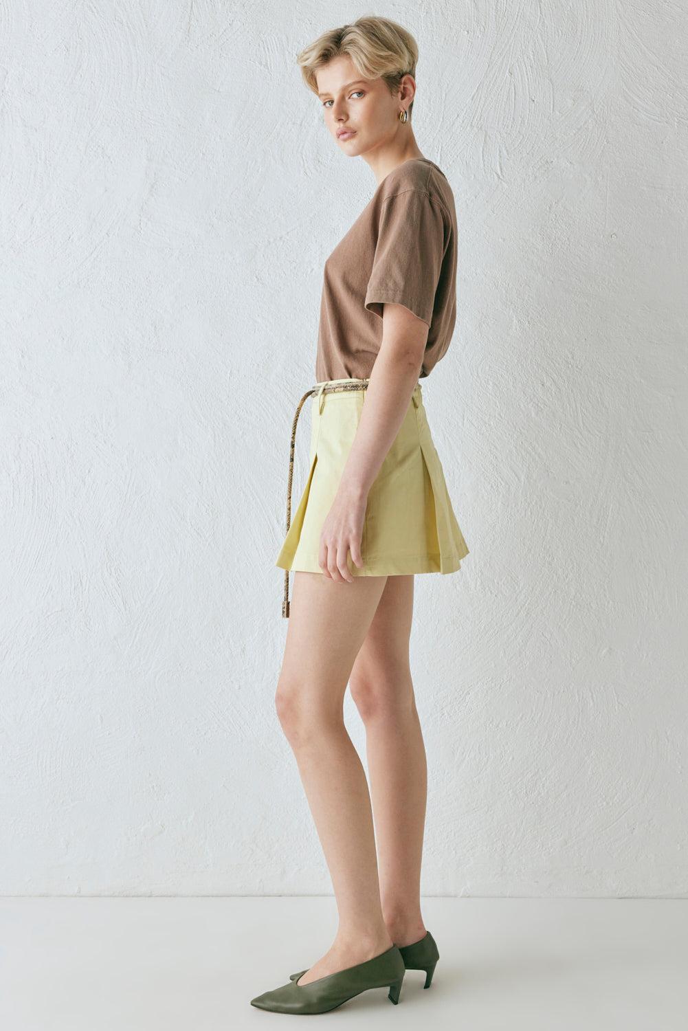Bev Mini Skort - Mid Waisted Pintuck Skort in Citrus