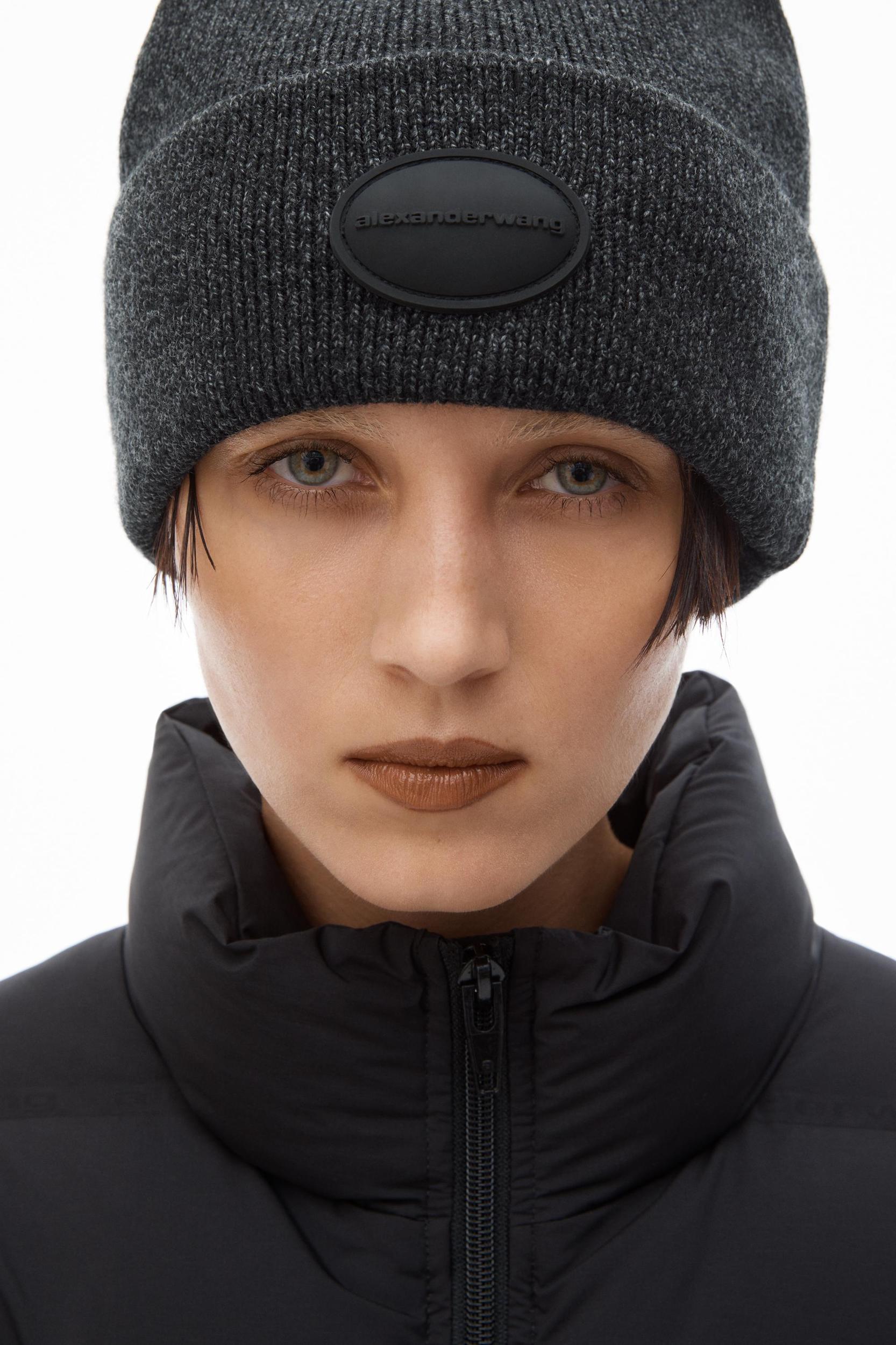 a dome logo elevates this wool-stretch beanie in charcoal. body composition: 93% wool/7% polyamide made in china 1kc4249052010