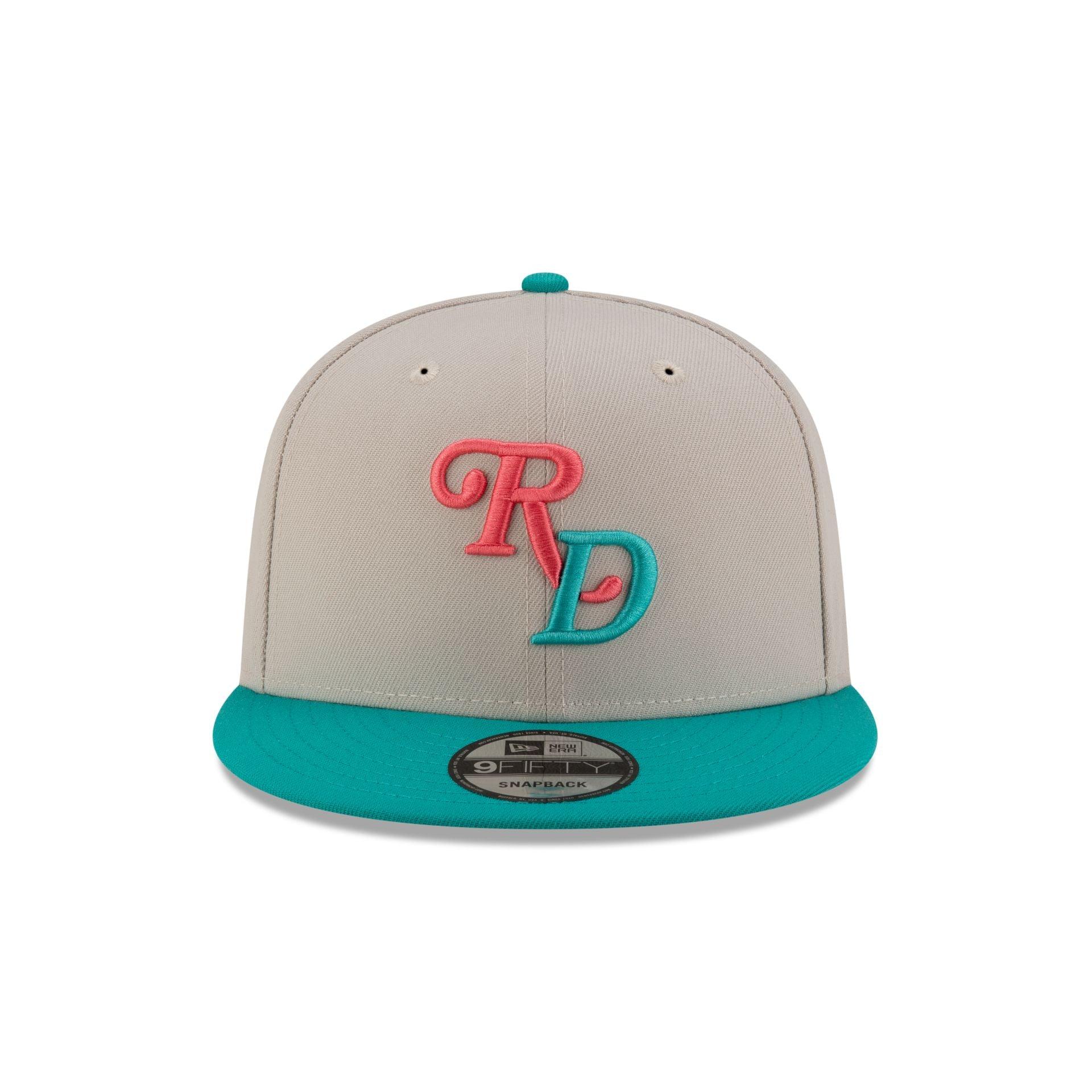 The Dominican Republic Teal Script 9FIFTY Snapback features an embroidered DR logo at the front panels with a snapback closure at the rear and a gray undervisor.
