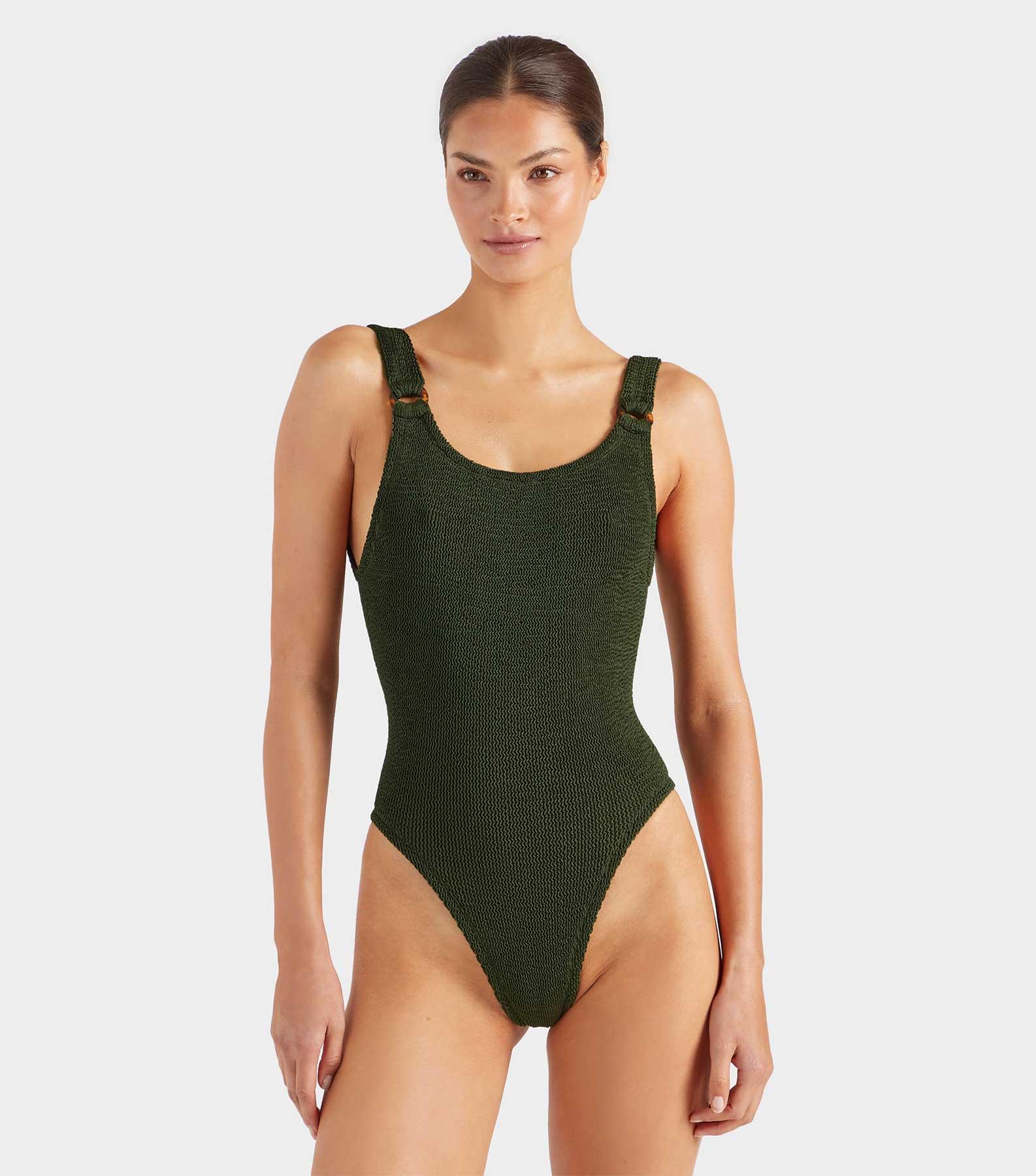 Some things never get old. Noughties tortoiseshell accents and a dipped neck silhouette and low scooped back – rule the beach in this iconic swimsuit.