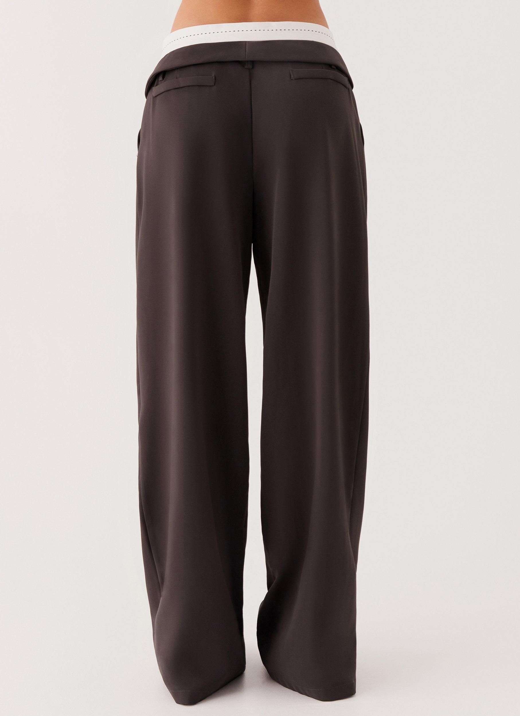 Peppermayo Exclusive Introducing our Don't Kill My Vibe Pants. With a flattering wide-leg fit and a stylish contrast stitch waistband, they exude effortless elegance and comfort. - Tailored trousers- Wide leg fit- Twin hip pockets- Unlined- Twin back faux pockets- Fly front closure with hook and bar- Belt loops- Contrast stitch waistband- Fold-over panel- Low rise- 96% Polyester, 4% Spandex Size AU 8 / US 4 garment measurements: Waist 76cmLength 107cm Olivia is 170cm and wears size AU 8 / size US 4