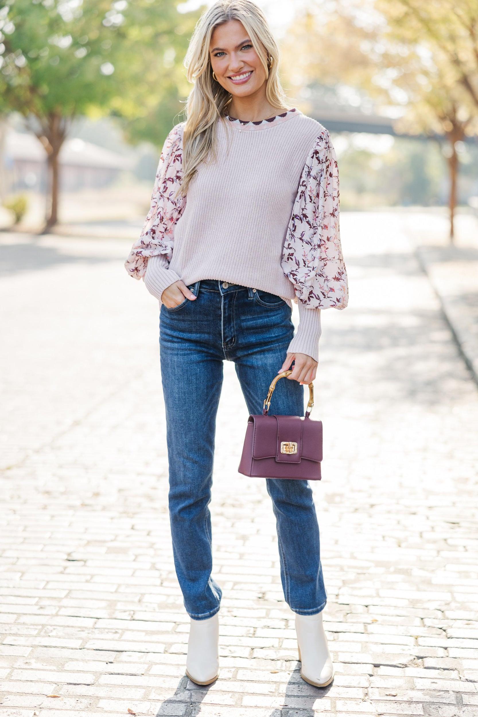 This blouse is so pretty! We can't get over those balloon sleeves and we love the pop of floral! This blouse is going to be such a hit in your wardrobe! Round neckline Long bubble sleeves Floral print Fair stretch Baileigh is wearing the small.