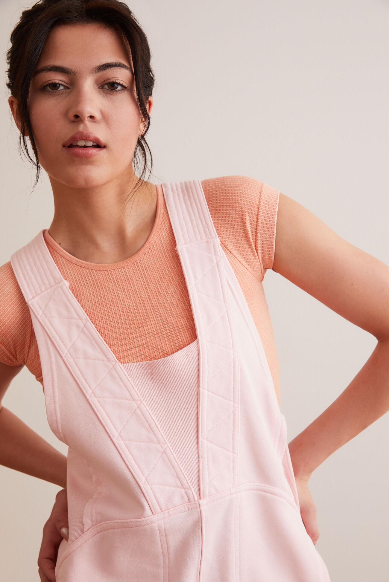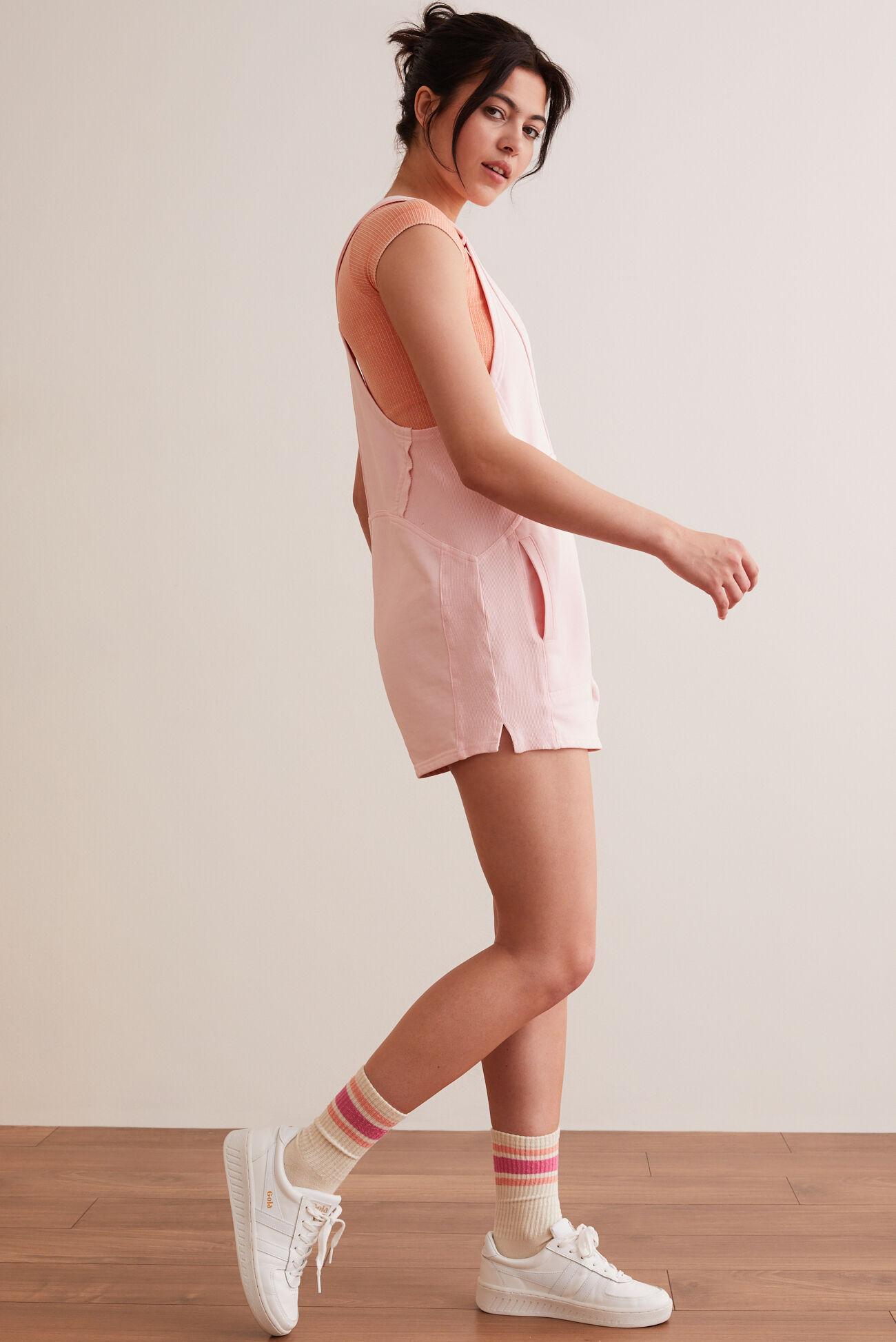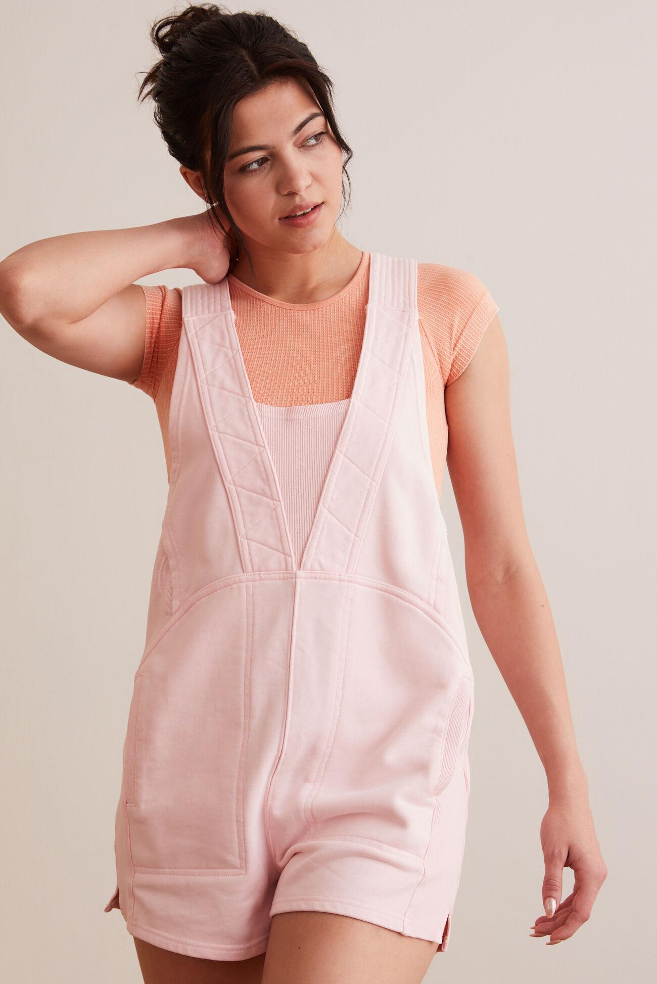 Adventure on in this lightweight romper, featuring a soft sweatshirt-like material and ribbed fabric to give you extra movement in all the right places. With its flattering, relaxed fit and convenient side pockets, it's perfect for everything from lounging at home to running errands in style.