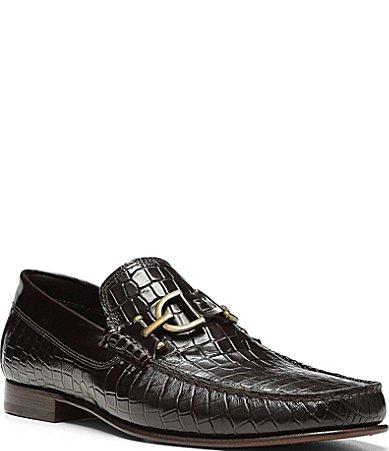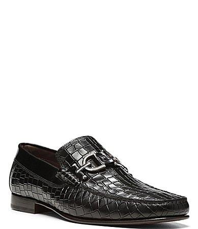 From Donald Pliner, the Mens Dacio Bit Loafers features: croco leatherbrushed signature D bit ornamentComfortable calf leather liningA flexible buffed leather outsole is finished with a rubber plug and non-slip heel guardMade in ItalyImported.