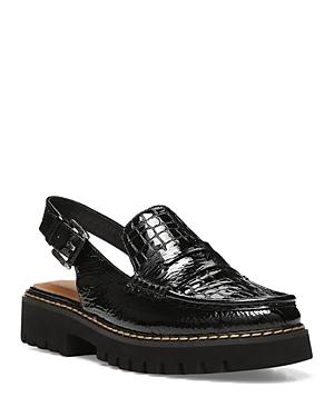 From Donald Pliner, the Halie Suede Slingback Penny Loafers feature:Soft suede upperPenny keeper strapContrast stitchingAdjustable buckled sling back closureLeather liningMemory foam padded sockLightweight EVA lug outsoleApprox. 1.25 heel heightImported.