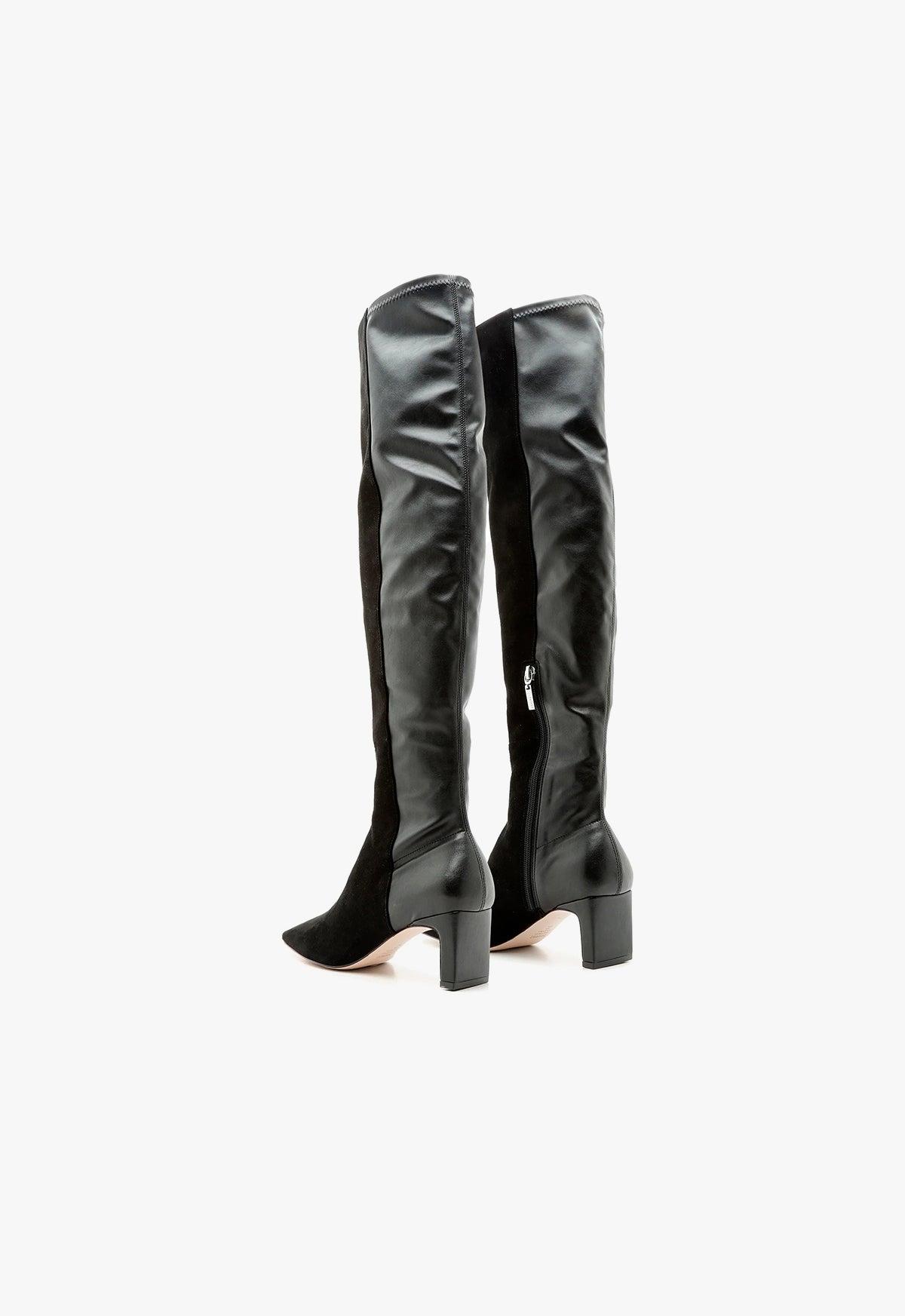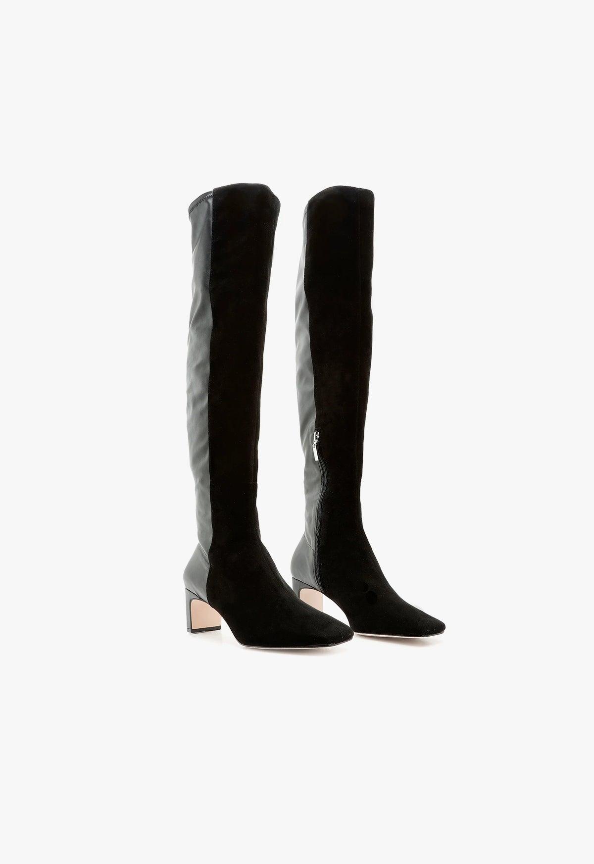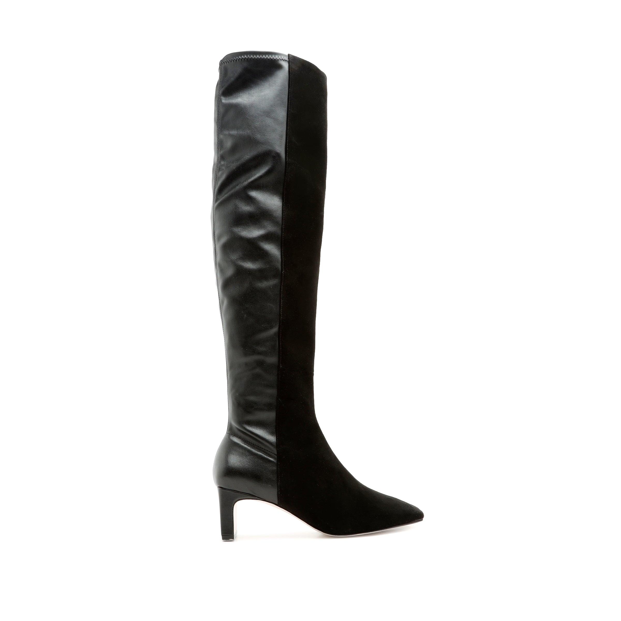The perfect wear-with-everything boot, featuring a knee high silhouette of suede and leather with a walking-friendly heel. Half and Half with a suede front and leather backing. Lightweight, perfect boot for the spring transition. Material: Suede & Leather Heel Height: 3.3 in | 85 mm Shaft: 21 in* Circumference:13 in* *Measurements are based on sample size 6 and increase with each size* Knee-high boots Square toe Inside zip closure Pillar heel Leather Sole SKU: S2098200020001