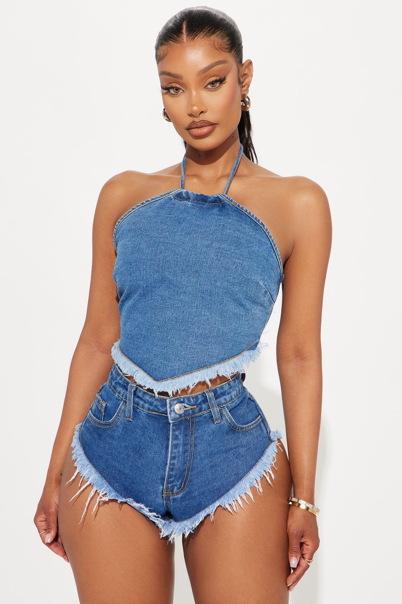 Available In Medium Wash. Pair With Done Decision Fray Cheeky Denim Shorts Denim Vest Back Closure Tie Halter Neck Fray Hem Non Stretch Disclaimer: Due To The Specialized Wash Process, Each Garment Is Unique. 80% Cotton 10% Viscose 3% Polyester 7% Recycled Fabric Imported