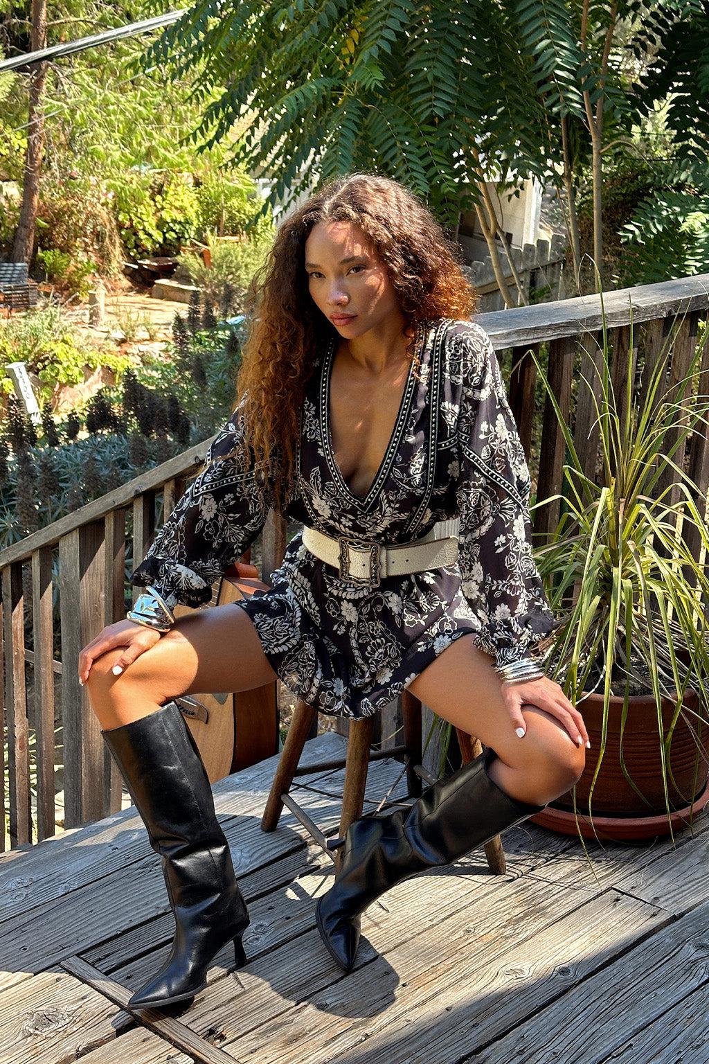 From Hot girl summer to Boho Girl Fall, the Donna Black and White Floral Mini Dress is here to make a statement. This flowy and free boho inspired mini features a loose fit silhouette with an even dreamier black and white floral print. Wear knee high boots and add a belt for an effortlessly feminine and flirty boho look.
