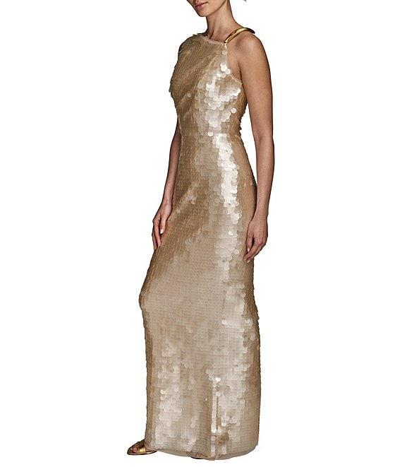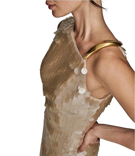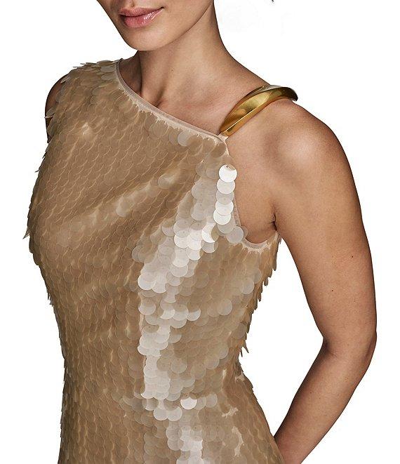 Donna Karan Asymmetric Neck Sequin Sheath Dress