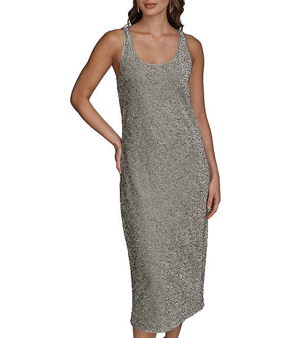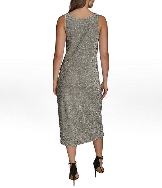 Donna Karan Beaded Velvet Scoop Neck Sleeveless Midi Sheath Dress