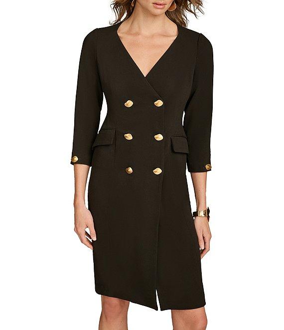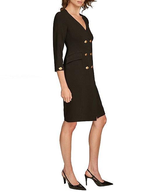 Donna Karan Cady Crepe V-Neck 3/4 Sleeve Jacket Dress