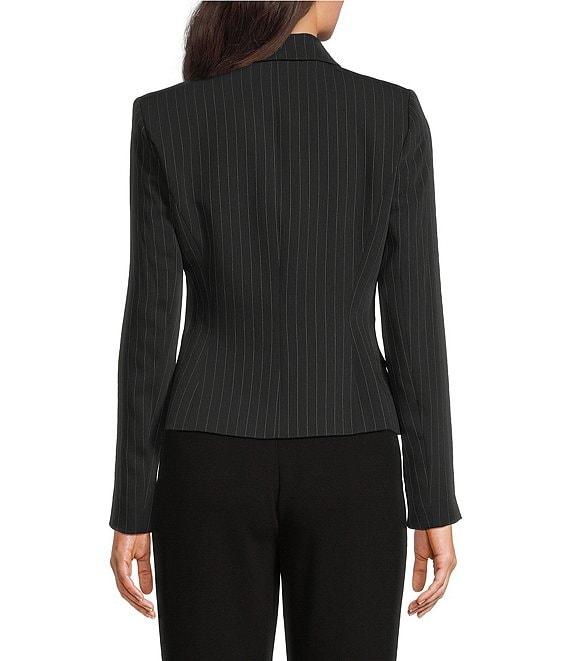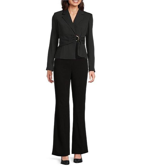 Donna Karan Coordinating Pinstripe Notch Lapel D-Ring Belted Jacket
