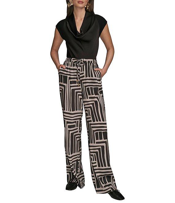 Donna Karan Coordinating Printed Satin Back Crepe Wide Leg Pants