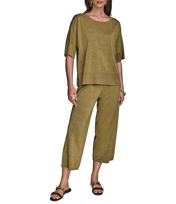 Donna Karan Coordinating Shimmer Knit Short Sleeve Oversized Top