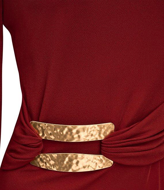 Donna Karan Crepe Jersey Crew Neck Long Sleeve Hardware Ruche Waist Sheath Dress