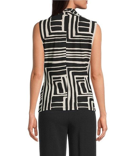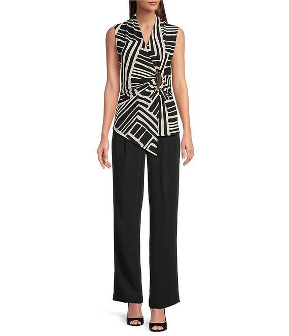 Donna Karan Crepe Sleeveless Novelty Bar Faux Wrap Top