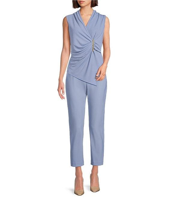 Donna Karan Faux Wrap Hardware Surplice V-Neck Sleeveless Top