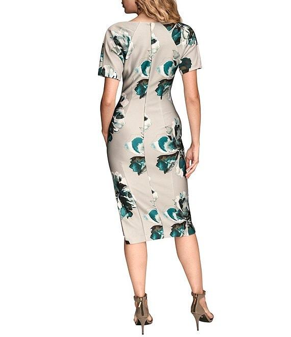 Donna Karan Floral Print Short Sleeve Scuba Midi Dress