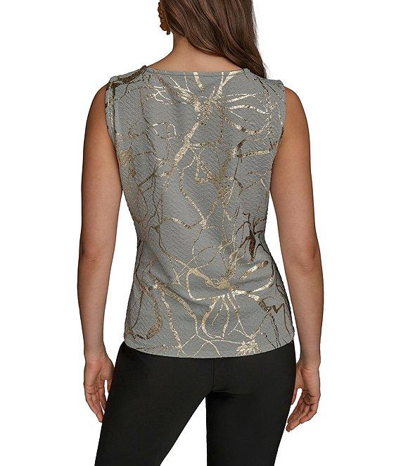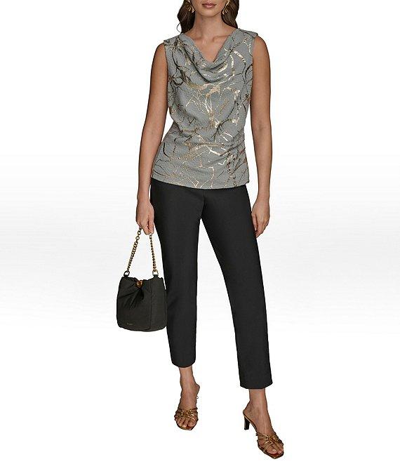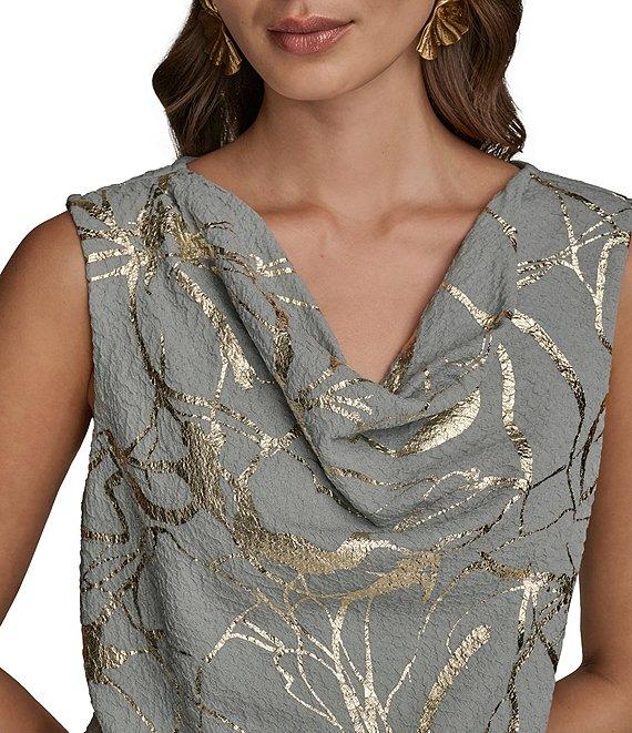 Donna Karan Foil Marbling Textured Knit Cowl Neck Sleeveless Top