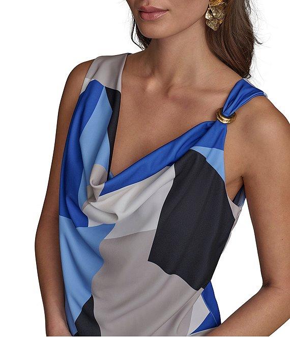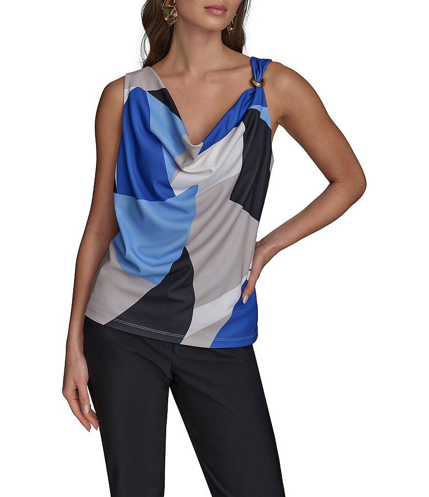 From Donna Karan, this top features: Cowl neckline Sleeveless Gold shoulder hardware Pullover construction Approx. 23.5" in length Shell & lining: polyester Machine wash cold with like colors; dry flat; cool iron if needed Dry clean if necessary Imported.