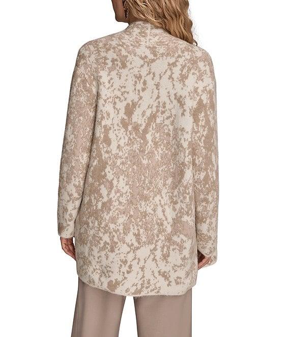 From Donna Karan, this cardigan features: Knit fabrication Oversized fit Shawl collar Drop shoulders Long sleeves Two front pockets Open front/no closure Approx. 30" length Reprocessed polyester/nylon/elastane spandex Hand wash/ dry flat Imported.