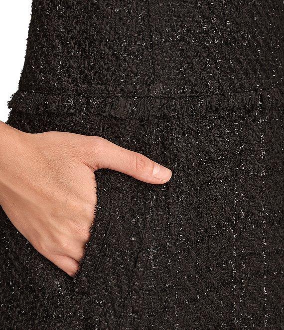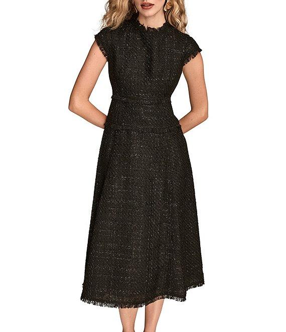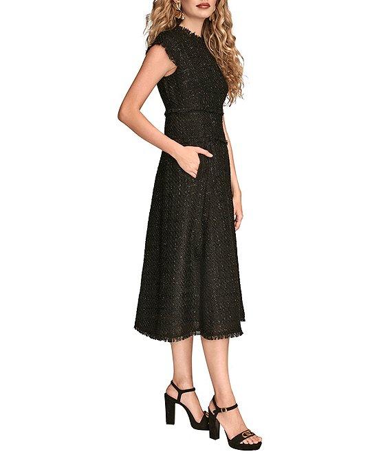 Donna Karan Metallic Boucle Crew Neck Short Sleeve A-Line Midi Dress