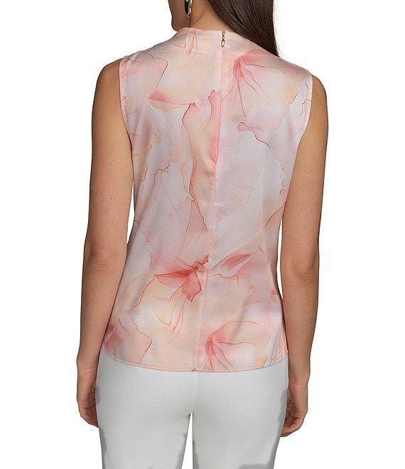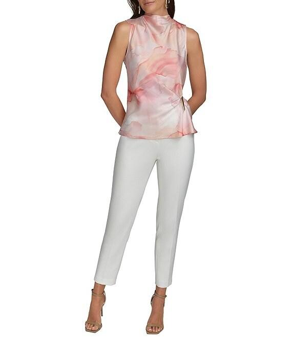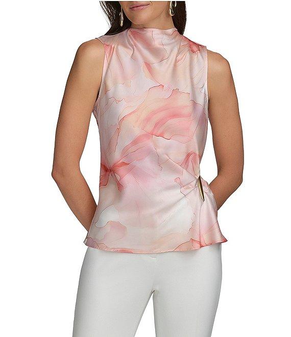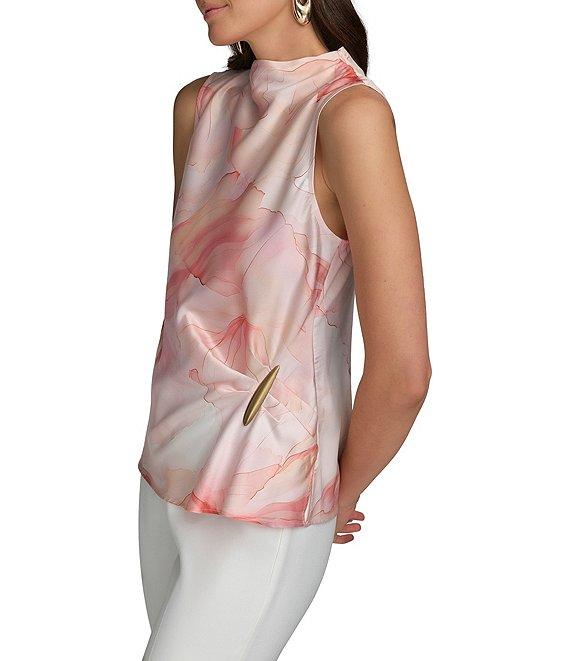 Donna Karan Printed Mock Neck Sleeveless Top With Hardware Detail