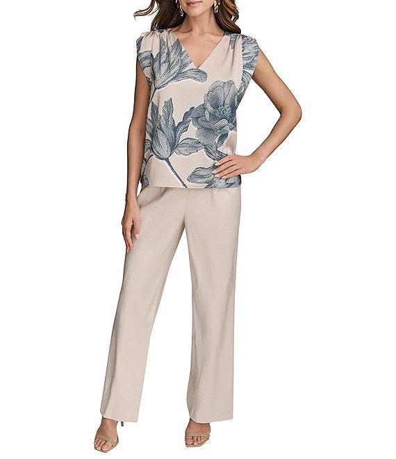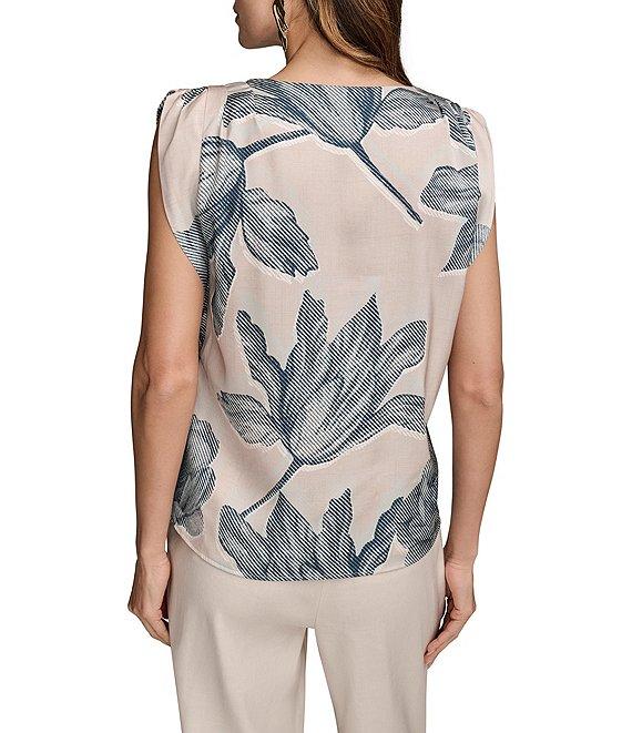 From Donna Karan, this top features:V-necklineCap sleevesPleated detail at shouldersPullover constructionApprox. 24" lengthPolyester; unlinedMachine wash cold with like colors inside out; gentle cycle; line dry; cool iron if neededDry clean if necessaryImported.