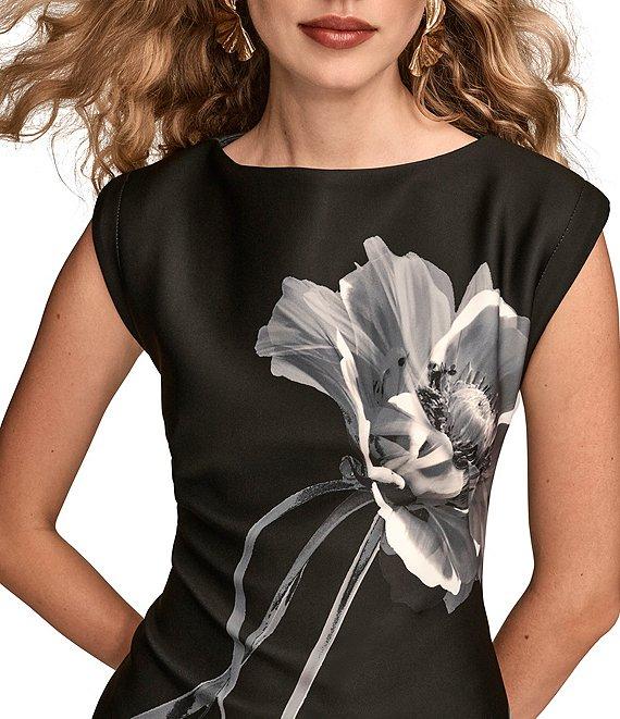 From Donna Karan, this dress features: Scuba crepe twill fabrication Boat neckline Short sleeves Sheath silhouette Floral print detail Center back zipper closure Approx. 40.5" in length Polyester/spandex Dry clean Imported.