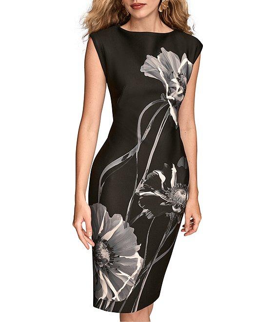 Donna Karan Scuba Crepe Twill Floral Print Sheath Dress