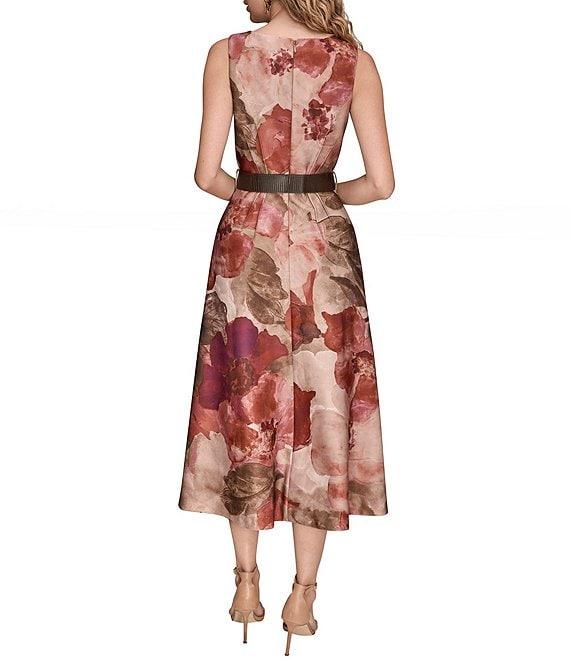 Donna Karan Scuba Floral Print Sleeveless Belted A-line Dress