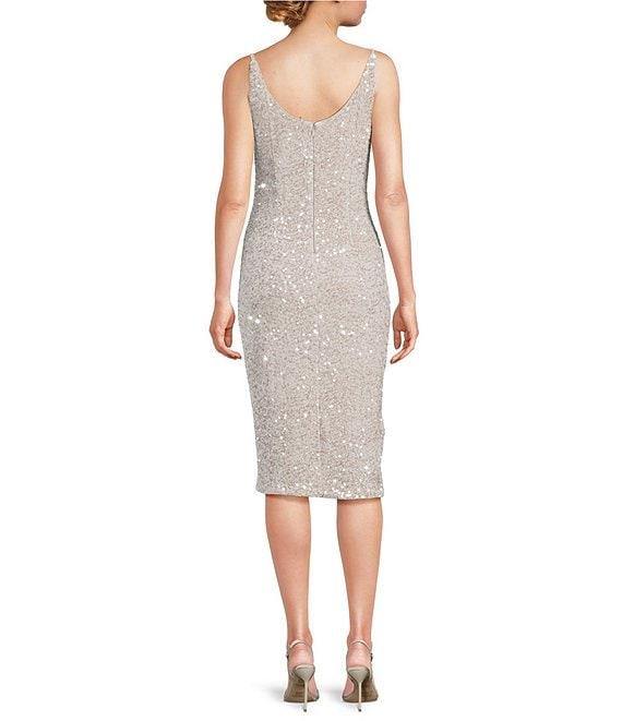 Donna Karan Sequin Velvet Boat Neck Sleeveless Sheath Dress