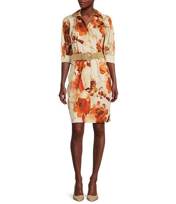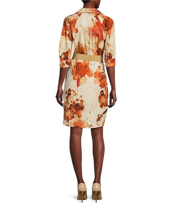 Donna Karan Short Sleeve Button Front Collar Belted Midi Shirt Dress