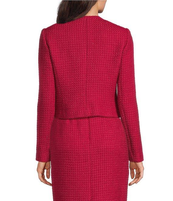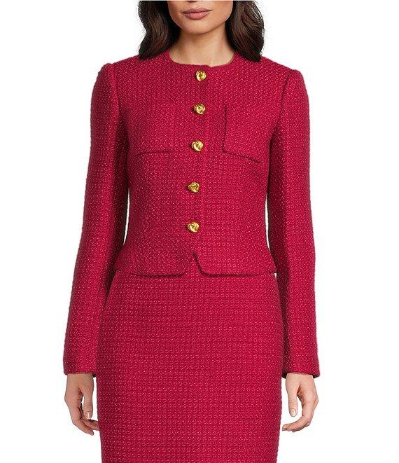 Donna Karan Tweed Crew Neck Button Front Cropped Jacket