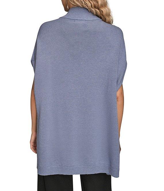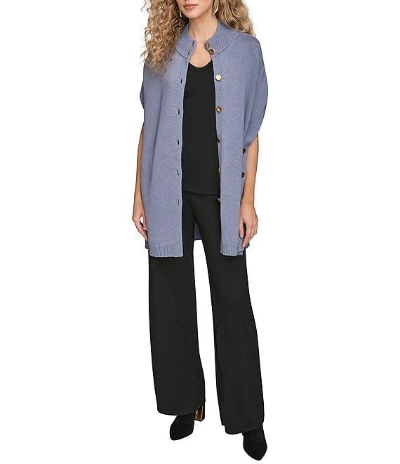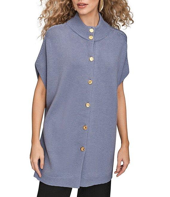 Donna Karan Wool Blend Button Front Mock Neck Capelet