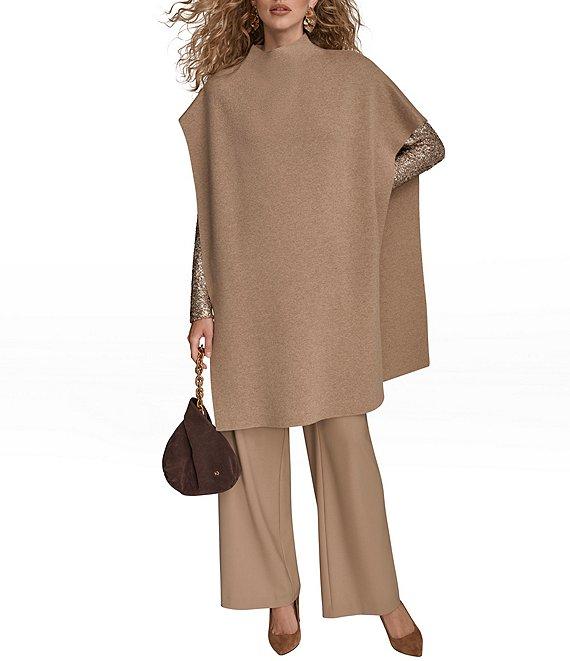 Donna Karan Wool Blend Mock Neck Asymmetric Poncho